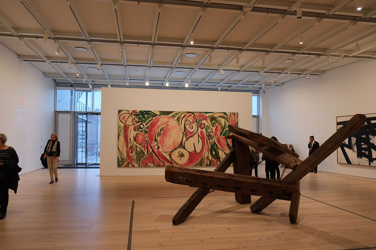 I am a big fan of museums which allow easy access to large open areas where you can shift the focus of your eyes to a distance, get some spatial relief from the necessary introversion of galleries, and let your mind wander a bit; the Whitney does this better than any museum I’ve ever seen. The large space isn’t just a relief from the galleries, it is a complement which intensifies the experience while providing a change.