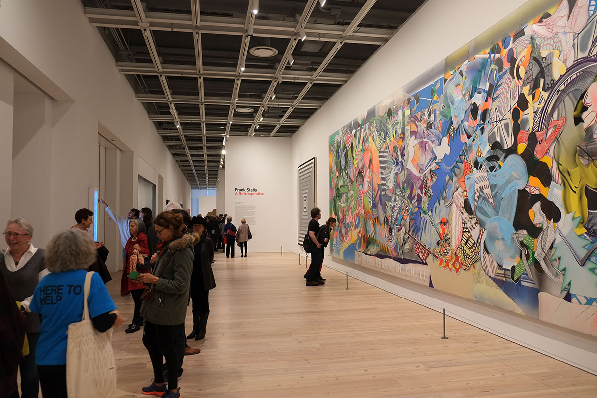 We saw the Frank Stella retrospective at the Whitney today, and it just seemed that many of the visitors had an uncanny formal relationship to the paintings. Even Greta.