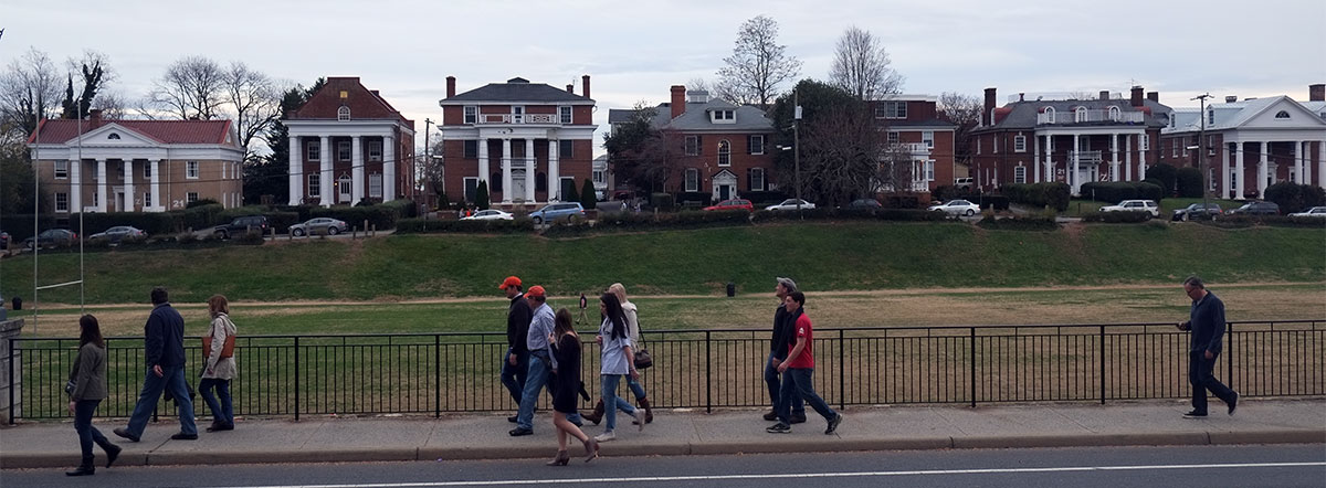Charlottesville is not your typical college town. Compared to the college town I know best, the population of the city is much smaller relative to the size of the school, yet in some ways there is more going on in Charlottesville that isn’t related to the university. The historic center of the city is substantial, with many significant large houses and civic buildings, and they had the good sense to not knock it down during the urban renewal craze. (Instead, they seem to have razed an adjacent poor African American neighborhood.) I’m assuming this is because the city had a prior existence, and the size of the city was larger relative to the university in the past, whereas most college towns probably wouldn’t have grown very much without the presence of the college.