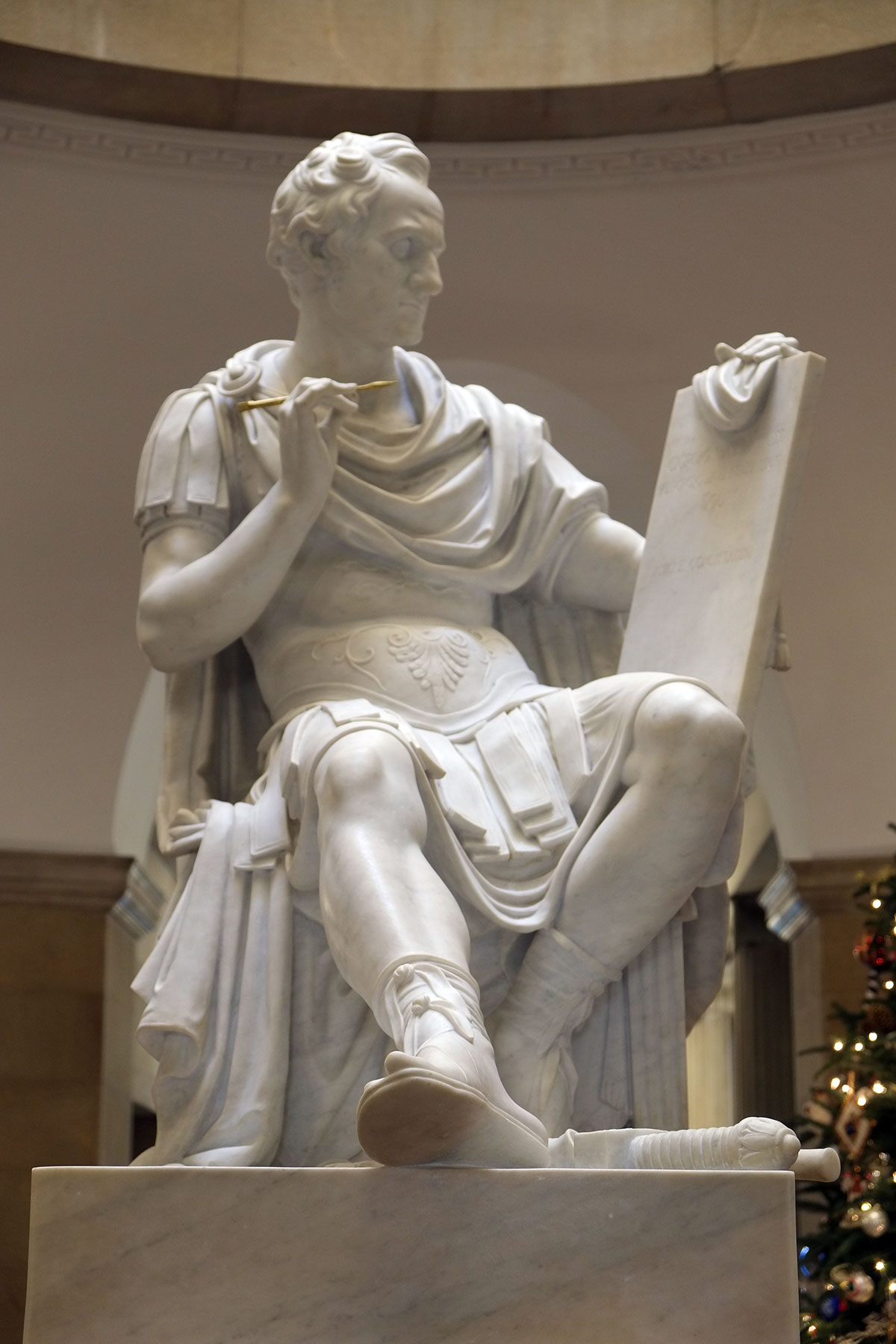 The rotunda contains yet another sculpture of a Founding Father as a Roman, with an interesting history. The original statue of Washington was sculpted by Antonio Canova (selected on Jefferson’s recommendation) after 1815, but was destroyed in the capitol fire of 1831. This statue is a reproduction, based upon sketches and descriptions, but it is still does the job.