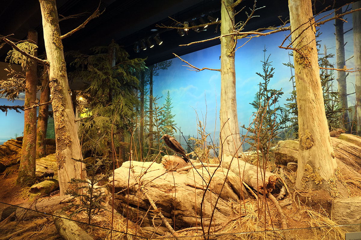 The North Carolina Museum of Natural Sciences was designed by Verner Johnson, a firm which seems to specialize in science museums. The expertise shows: it’s not a building which wows you with the architecture (more watered-down PoMo), but it is a superb natural science museum. It had many of the things that you see in any natural history museum these days – such as a few dinosaurs – but the strong focus is upon the environment and natural history of North Carolina. This also seems to be a pattern these days – regional museums and zoos are focussing on the environment and biology of the region, rather than doing a mediocre job trying to explain the whole world. This museum had excellent sections on the coastal region, on the Piedmont, and on the mountains. There were full-scale dioramas for each of these: