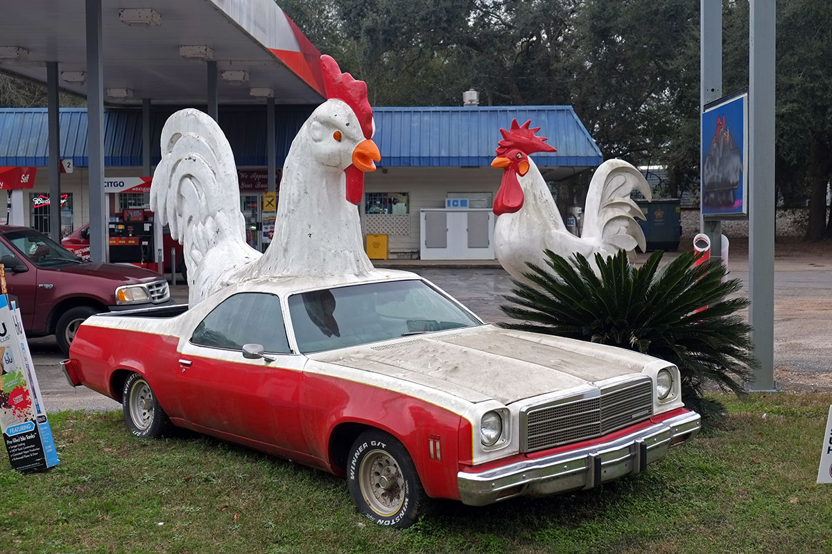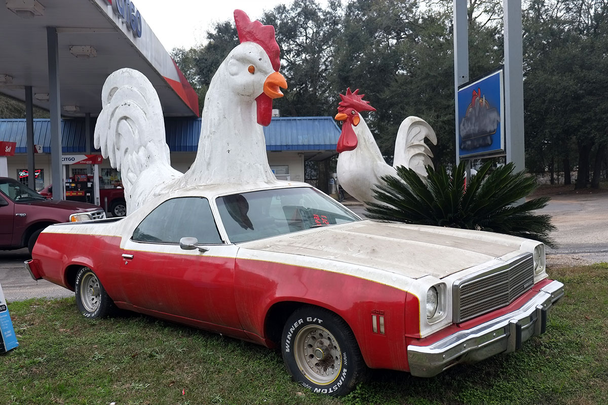 But our favorite installation was outside Theodore, Alabama: the sublime Chicken El Camino: