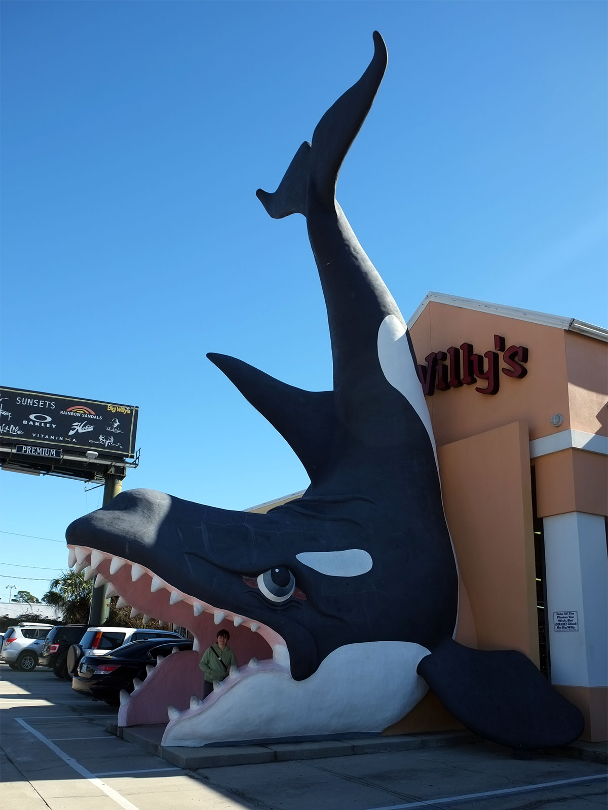 There are so many fiberglass sharks that we stopped paying attention, but being Northwesterners, this beautifully-sculpted killer whale (that’s what they’re called in Florida) got our attention.