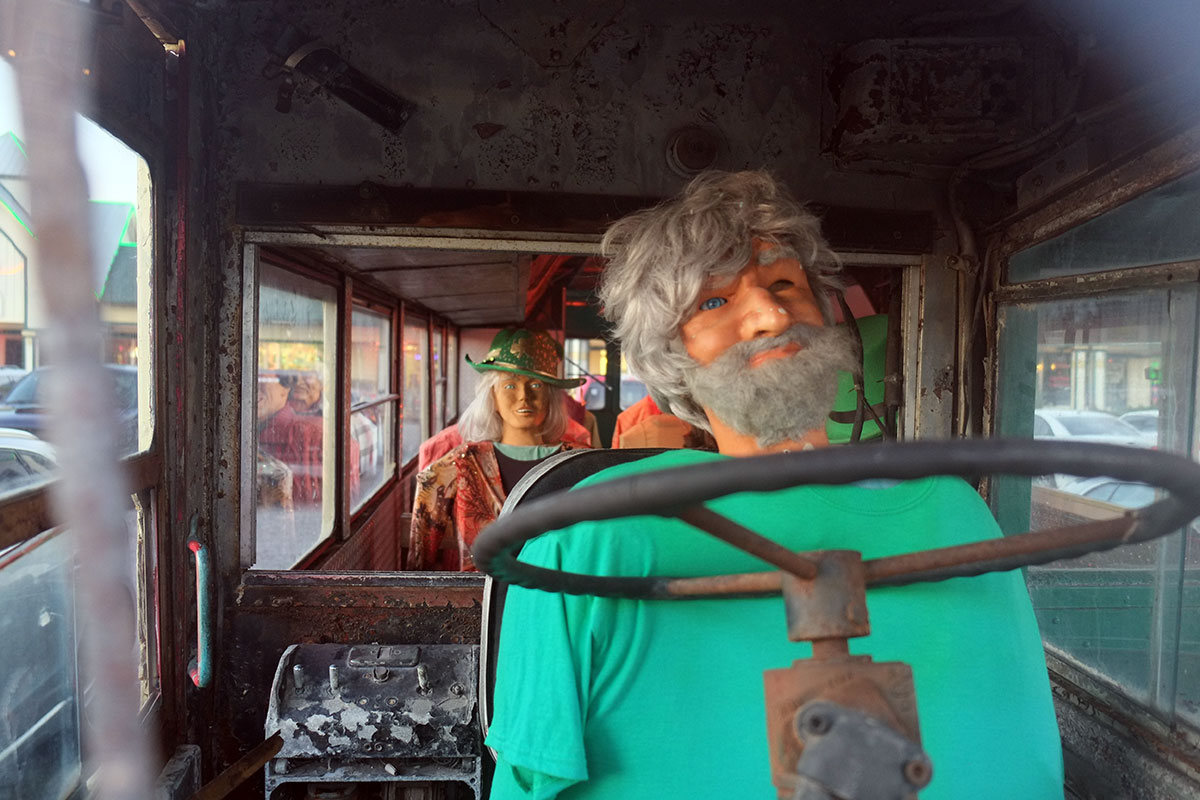 At Destin, we went to see the truly creepy double-decker bus filled with mannequins outside an Irish pub,