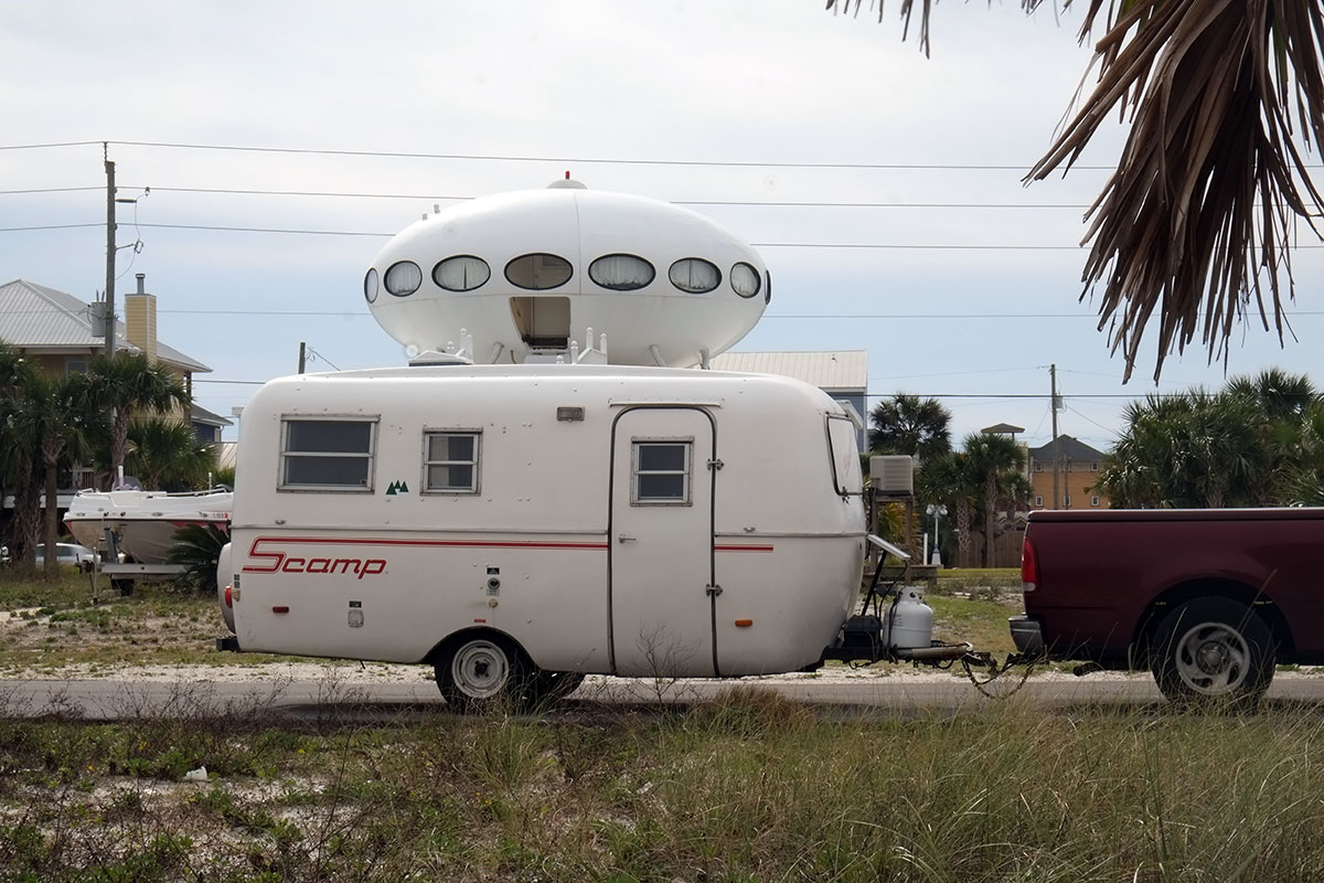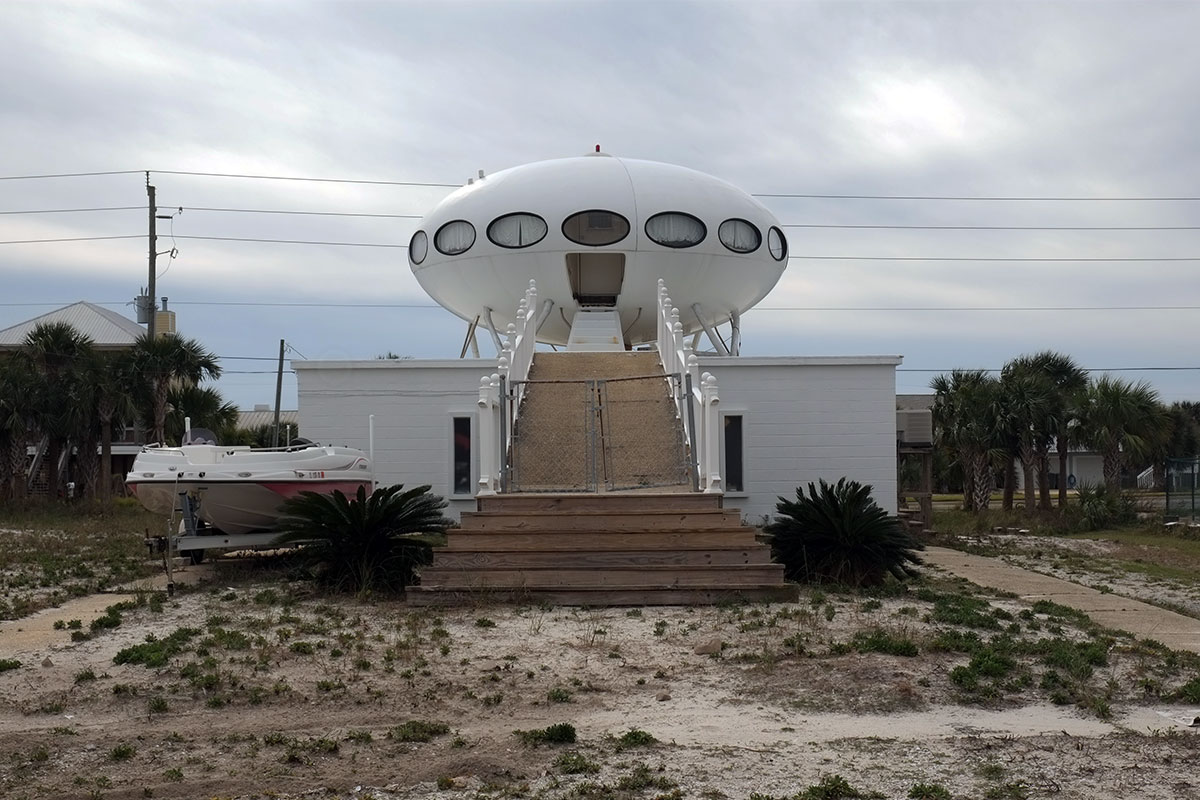 The kitsch extended to the architecture on the Panhandle. The UFO House at Pensacola Beach, which is actually a 1960s pre-fab fiberglass house from Finland. I thought the PVC colonial-style railings from Home Depot added a nice touch.