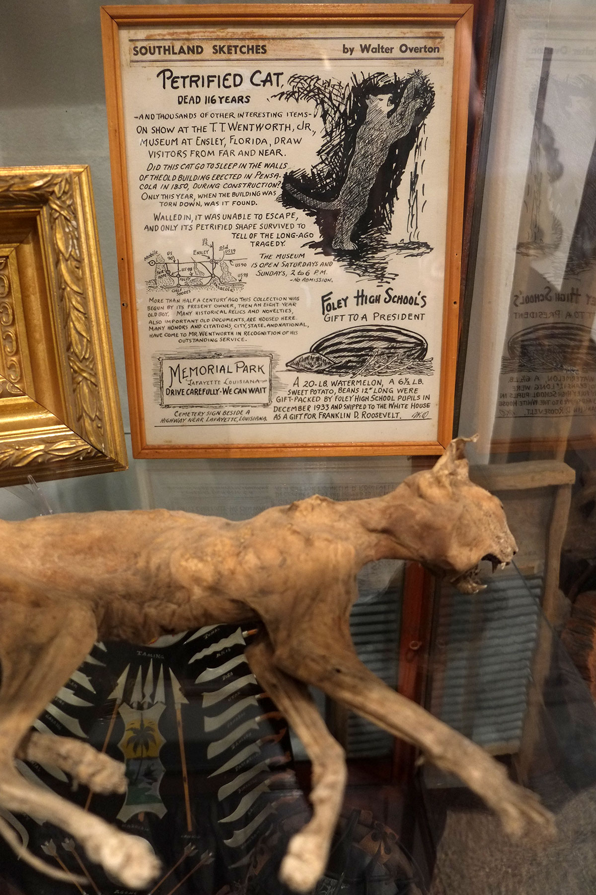 which included such wonders as this petrified (actually, mummified) cat,