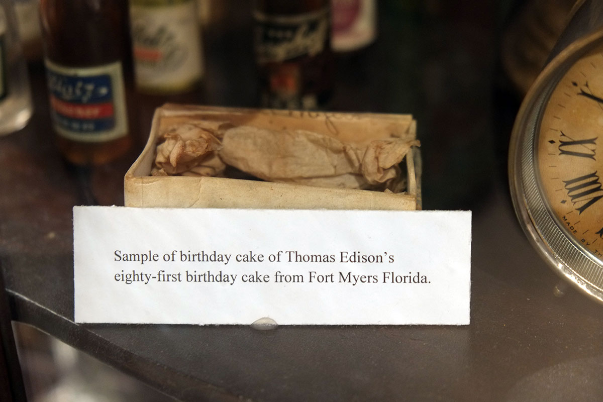 and a remnant of Thomas Edison’s 81st birthday cake.