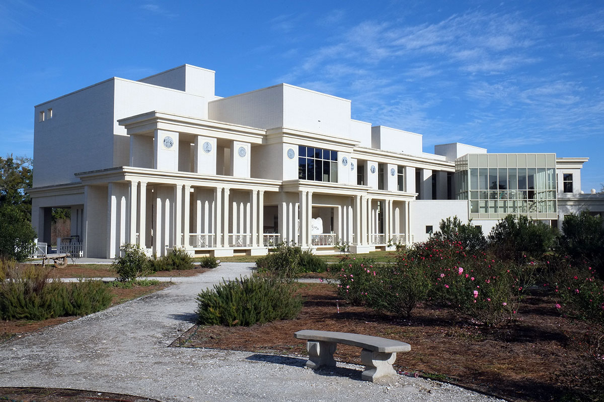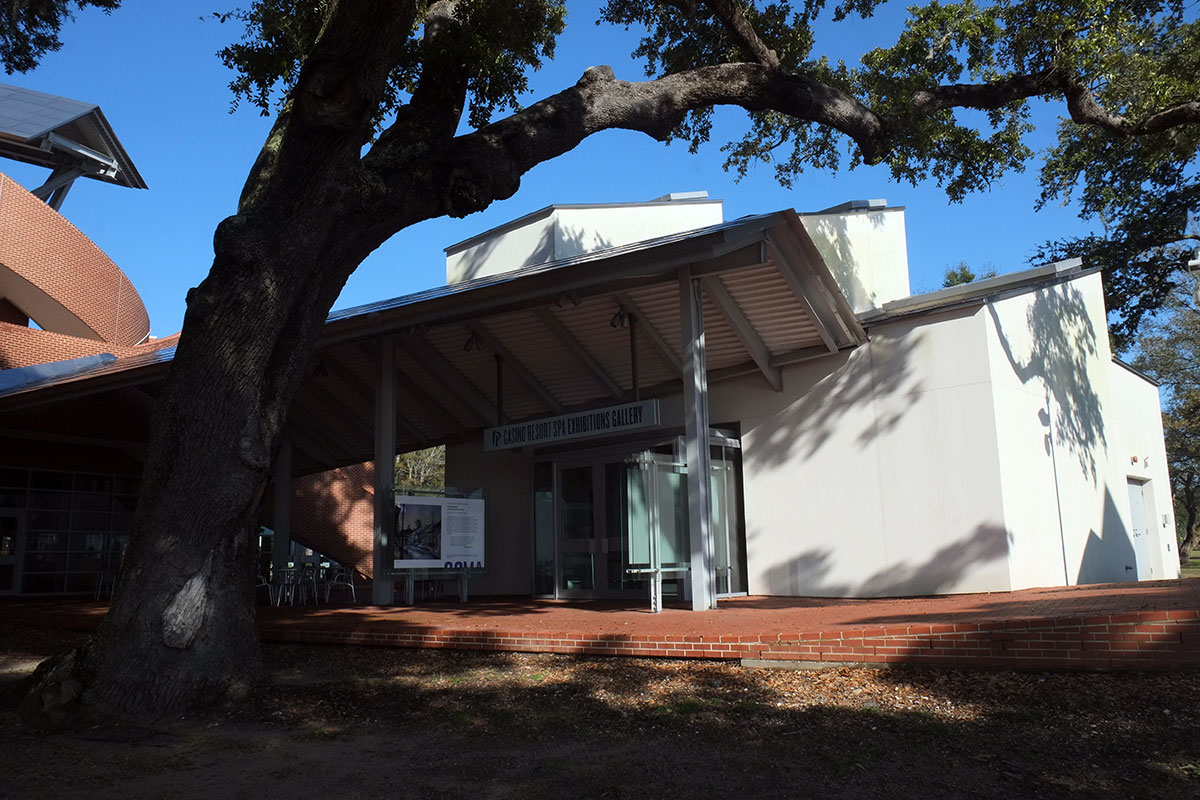 The Biloxi pottery center has studio, exhibit and meeting spaces, and plays different games with some of the same elements as the visitors’ center.