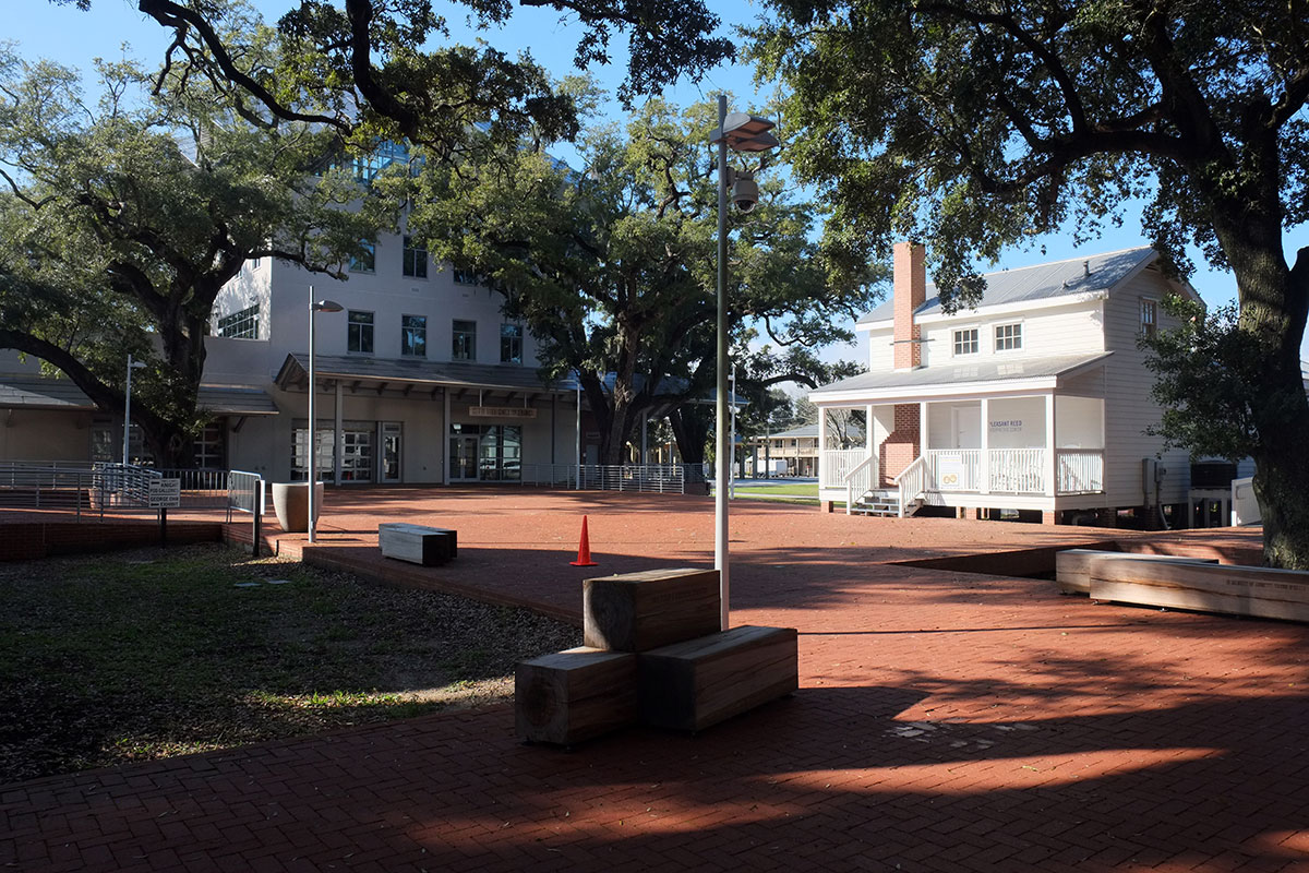 There is one reconstructed historical building, a house that was built in the 19th century by a local freedman, Pleasant Reed. It was destroyed by Katrina, but has been faithfully rebuilt as an interpretive center, showing the vernacular construction, and tracing the lives of him and his family.