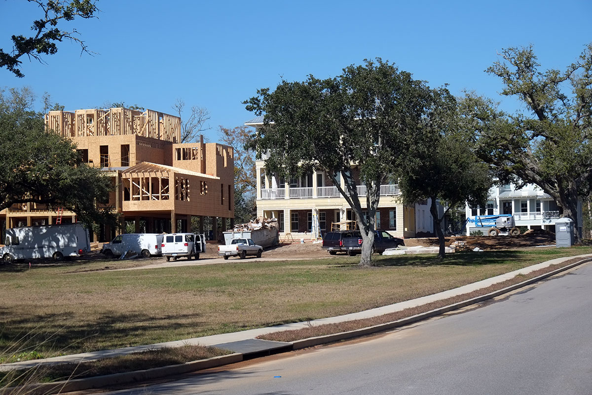 Now the area between the highway and the dunes has been subdivided and built up. You can’t ever see the Gulf as you drive or walk by. The houses may not be all that bad, but the seascape is gone, and the little classical cottages have been swallowed up.