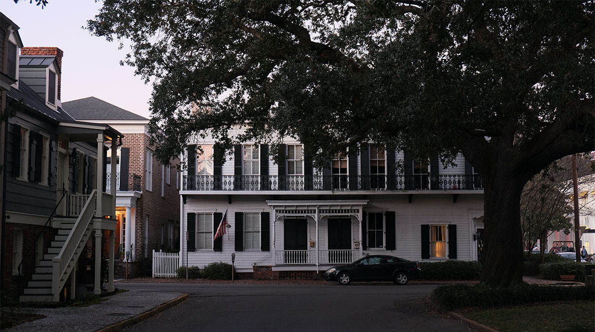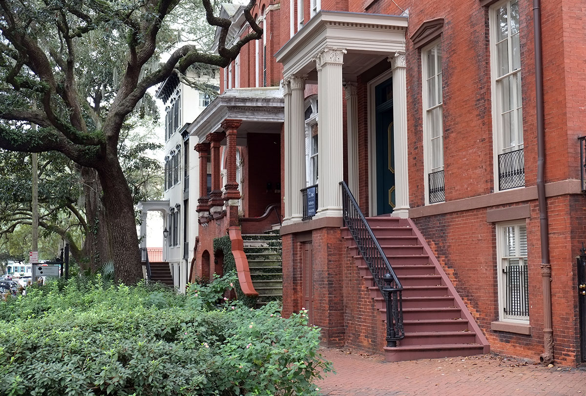 The basic module of Savannah’s plan is the “ward” – the repeating arrangement of streets that surround a square. Most planned American cities are based upon a simple grid, where every street is the conceptual equivalent of any other, but in Savannah there is a hierarchy of major streets, through streets, formal streets, residential streets, and alleys.