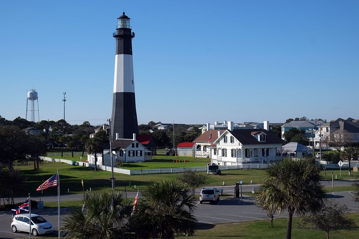 Having covered the core of the city on several trips, we ventured out to the coast this time, to Tybee Island, an interesting beachfront town that used to be a prominent resort area. The lighthouse at the mouth of the Savannah River seemed very tall to us Northwesterners, used to short lighthouses on tall cliffs.