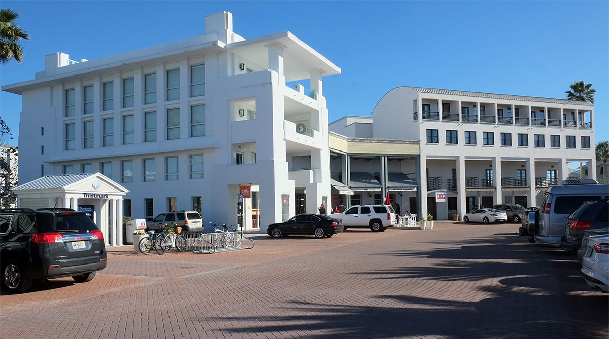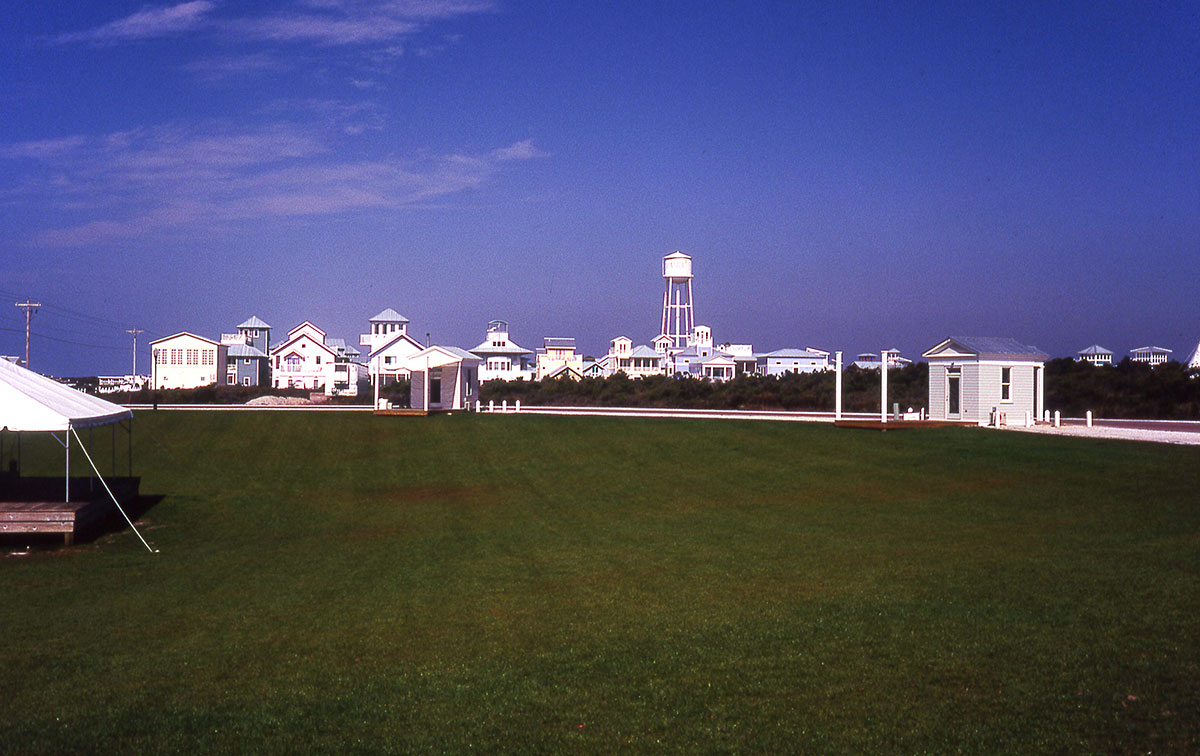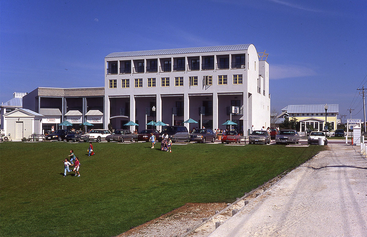 The downtown has undergone drastic changes.  In the 1990s there was a tiny Post Office, and one mixed-use building, one of the first major commissions for Steven Holl.  It was on the east side of the town green, while the west side was largely undeveloped.  Seaside106  Seaside104