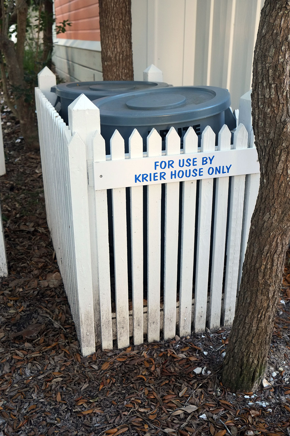 Other architectural trends have caught up with Seaside, such as starchitecture.  Early Seaside buildings were often designed by famous architects, but you usually couldn’t tell;  they worked together to create a coherent whole.  But in our brand-conscious era, these earlier buildings have now been routed.  Leon Krier designed the first house of his career in Seaside, which few of the residents back then seemed to know.  It has now been sold, and is known as the Krier House, and has its own exclusive garbage can.  DSCF0749