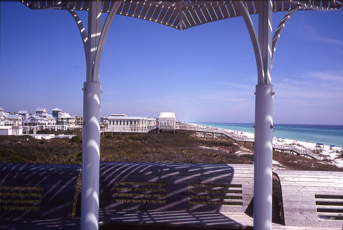 This last element points out another major change.  Even into the 1990s, there were very few buildings on the sea-side of the highway.  As you looked out from this lovely beach pavilion built by Steve Badanes, you saw other pavilions, dunes, a tiny beachfront restaurant, and a few small guest cottages.  Seaside084  Seaside061