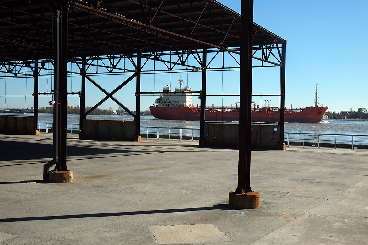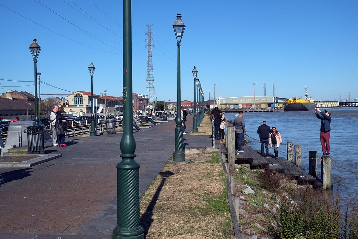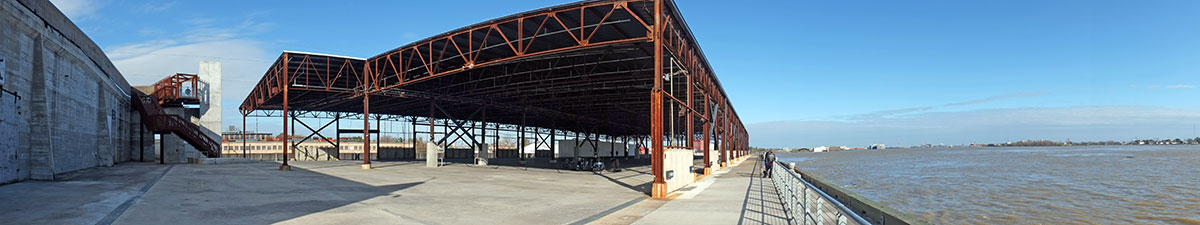 After a while I realized you can never see the horizon in New Orleans.  It’s completely flat, so you’re never high enough to see over things, plus the height of the buildings around you and the levees along the waterways means you’re essentially in a shallow bowl.  The only way to get a sense of the larger landscape is to climb atop the levees along the river or Lake Ponchartrain.  The recently completed Crescent Park, which runs along the river from the Marigny through Bywater, is a New Orleans version of the High Line or Riverside South.  Designed by a team including EDR, David Adjaye and Hargreaves Associates, it has kept the remains of the industrial waterfront.  DSCF2014  DSCF1560 DSCF1706