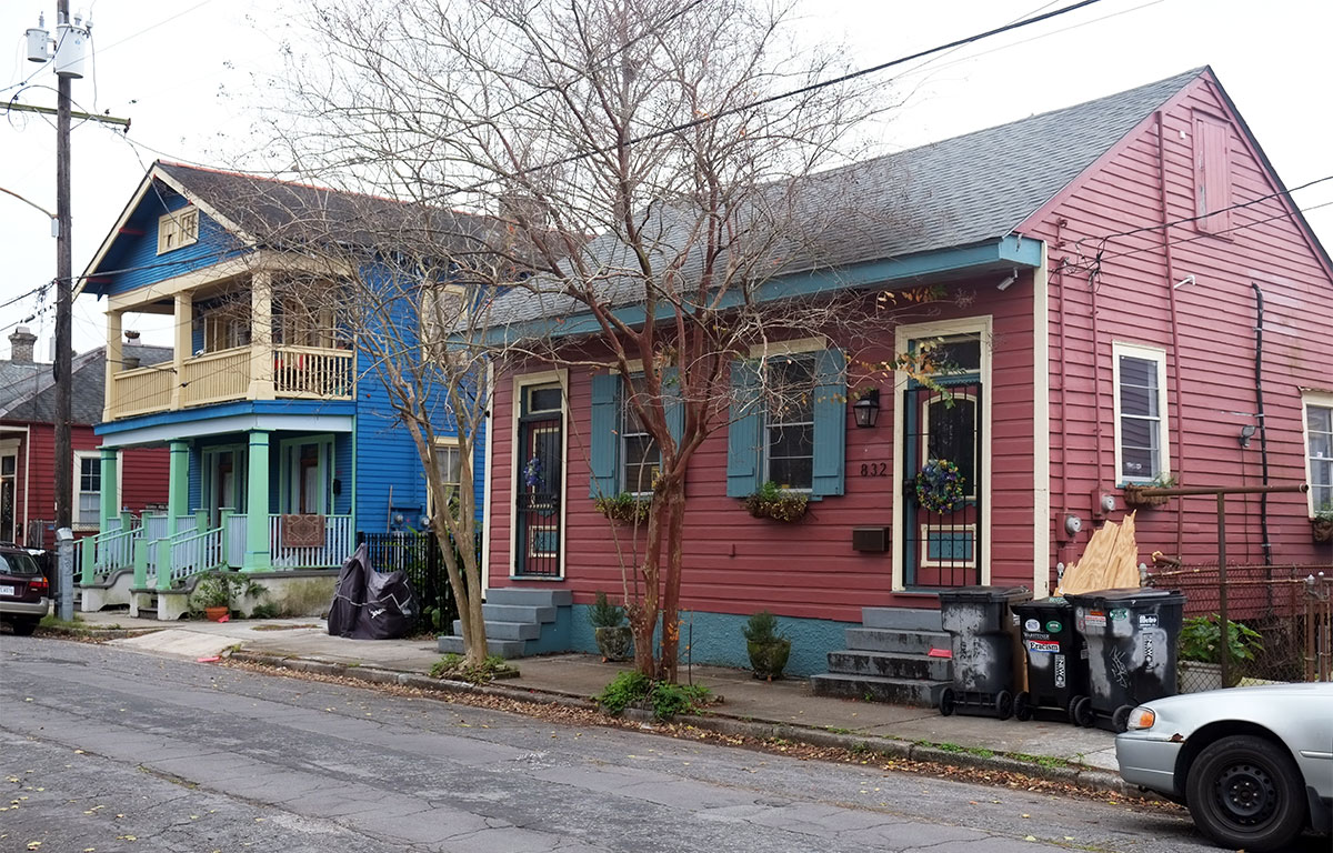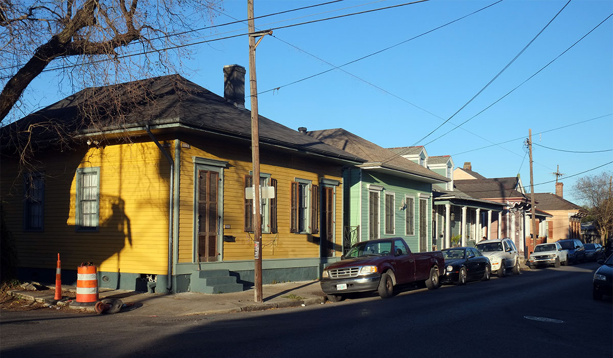 DSCF3512We stayed with Glen and Michelle in the Marigny, one of the first faubourgs, developed from a former plantation next to the Vieux Carre at the beginning of the 19th century.  It is mainly residential, with a wide range of New Orleans house types – double shotguns, Creole cottages, etc.  (There will probably be a post just about New Orleans housing).