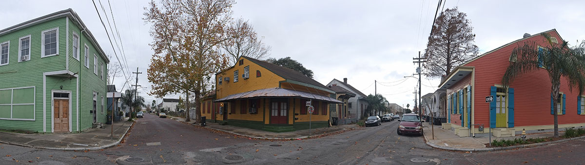 I spent a little more than 3 months in 2010 in and near New Orleans, doing Katrina relief design work in Poplarville Mississippi, and visiting my cousin who lived on Royal Street, in New Orleans. I almost moved into Ms. Pearl’s Home for Mimes in Bywater. You can read my adventures on my blog from then, Tourtoise. But, I never appreciated the macro design of the city until I read your description, which has been the case with many of your wonderful posts about cities I’ve been to. I would like to add one perception, if I may. I am living in Guatemala now, and I’d like to contrast one aspect of Antigua and New Orleans. Antigua is a beautiful, preserved (rebuilt after earthquake), 500 year old Colonial city of 15,000. It’s a lovely grided city that’s fun to walk, but mostly, one finds walled street fronts, and doors which lead to gardens and residences and wonders within. The only way to really get to see Antigua is to befriend locals or expats and get through those doors. New Orleans is the opposite. It seems that every street in the French Quarter has store front after store front, and bar after bar, facing the street, punctuated by doors that lead to private courtyards, yes, but from which the second floor residences above reconnect with the street via the legendary street facing balconies. There are secret wonders in the courtyards, but the result of the typical building parti is the most lively, permeable streetscape indoor/outdoor, private public scene I have ever experienced, affecting commerce and the social life of the city. New Orleans is more than a party town, which it is. It is also a culture in which private life is on display, and public life is drawn into the living rooms. It is a life of performance art writ large. Pete, thanks for your wonderful blog, I read every installment with a smile ;^)