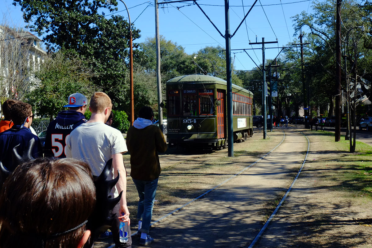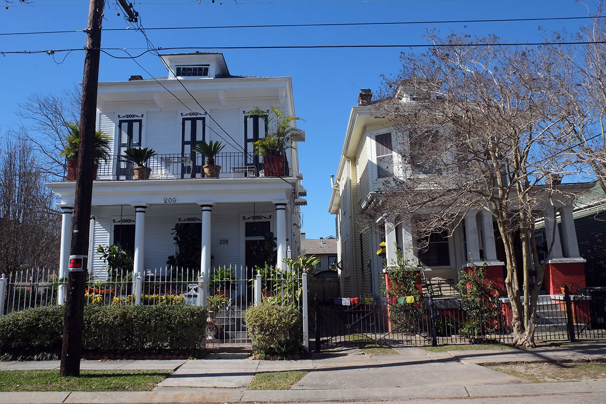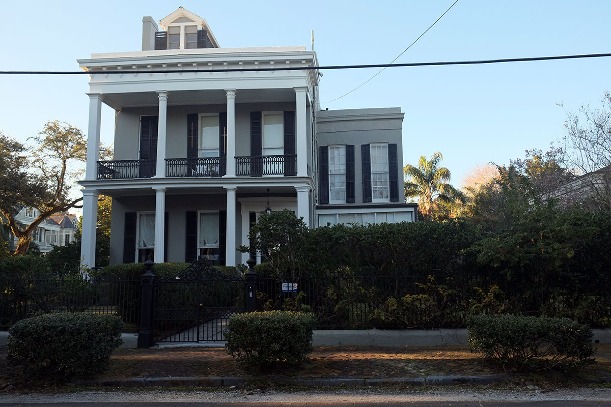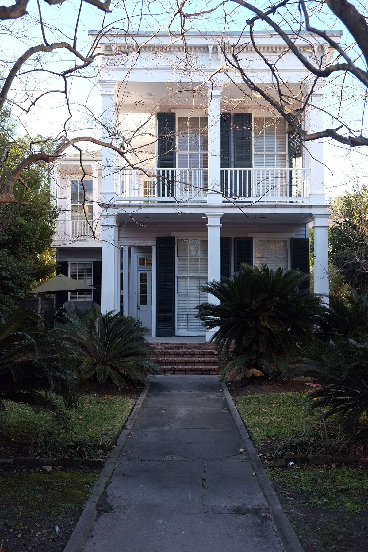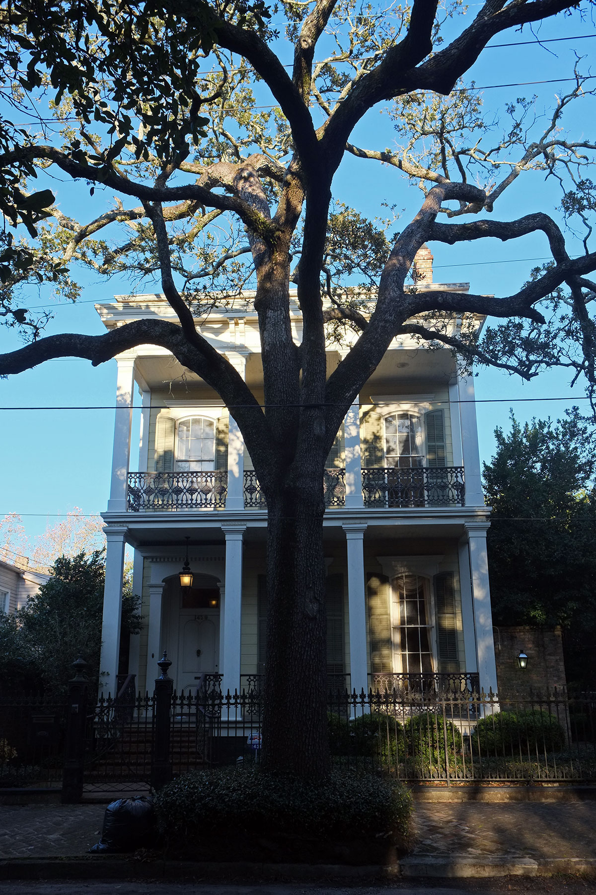 This side of town is served by the other streetcar line, along St. Charles.  The old cars are in fabulous condition, and a miles-long ride is one of the best ways to see the city.  DSCF2858This area is remarkable.  In some ways it looks more like other American cities, in that styles that were current in the late 19th century are all visible, but they are adapted to New Orleans.  There are a lot of Greek Revival houses, their large porticos well-suited to the climate.    DSCF1629DSCF1638  DSCF1657  DSCF1659 The wealth of the builders is apparent – whereas most of New Orleans’s older dense residential neighborhoods were working class in origin, in uptown there are many areas with large houses and big yards.