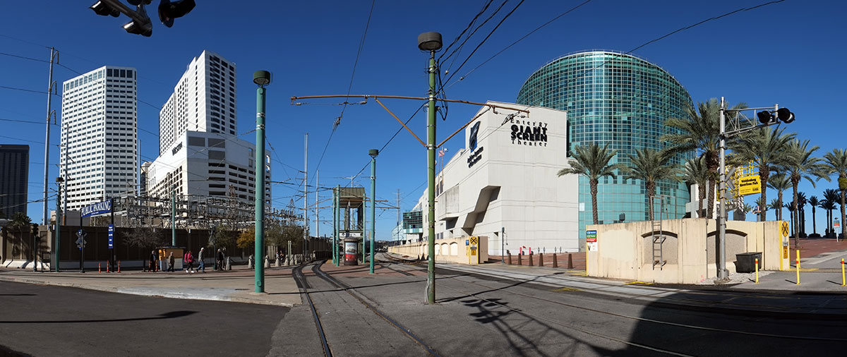 The end of Canal at the River is the center of tourist / convention madness.  Hotels, convention center, casino, aquarium – all the overscaled and blank buildings are here.  It works pretty well- these fairly standard dreadful buildings are clustered and have a minimal impact on the other neighborhoods.  You can just ignore this part of town if you don’t have to go there.  DSCF2032  DSCF2098