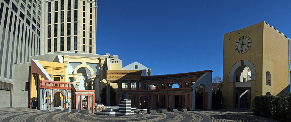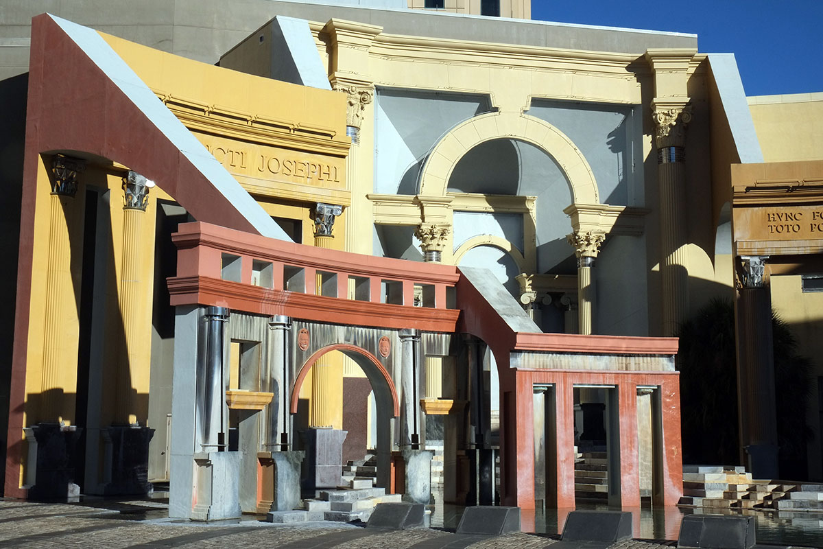 Poydras St. is also the location of Charles Moore’s Piazza d’Italia. It’s a funny little thing – filling in an open space between a skyscraper and a parking lot.  Moore was obviously trying to construct  a place that could be inhabited, unlike the empty modernist plazas built to satisfy zoning ordinances, but the cards were stacked against him.  If the city fabric grew up densely around it, so that you emerged from a street into the plaza, it might work.  But the towers are pulled back, and one sees the Piazza from the outside as a disconnected object, not just as a surrounding screen from the inside.  DSCF2075The detailing is over-the-top Pomo, and is perhaps our best remnant of the movement spinning out of control.  DSCF2077