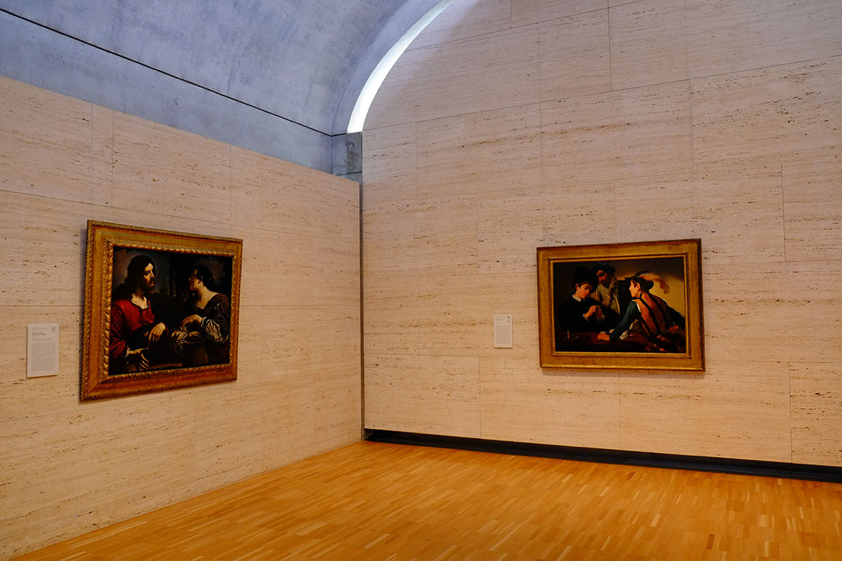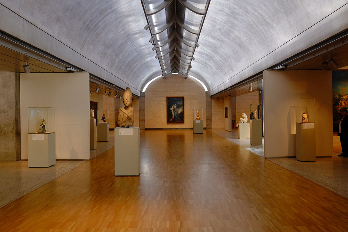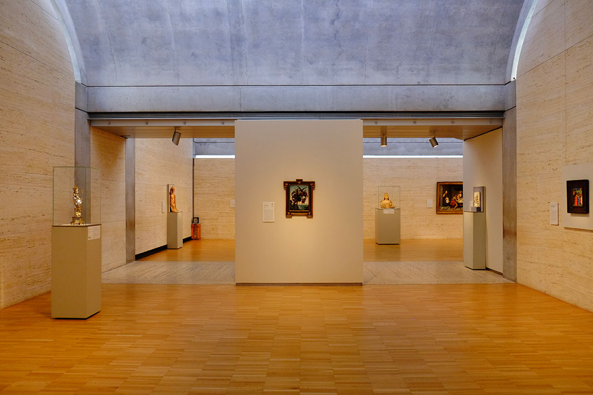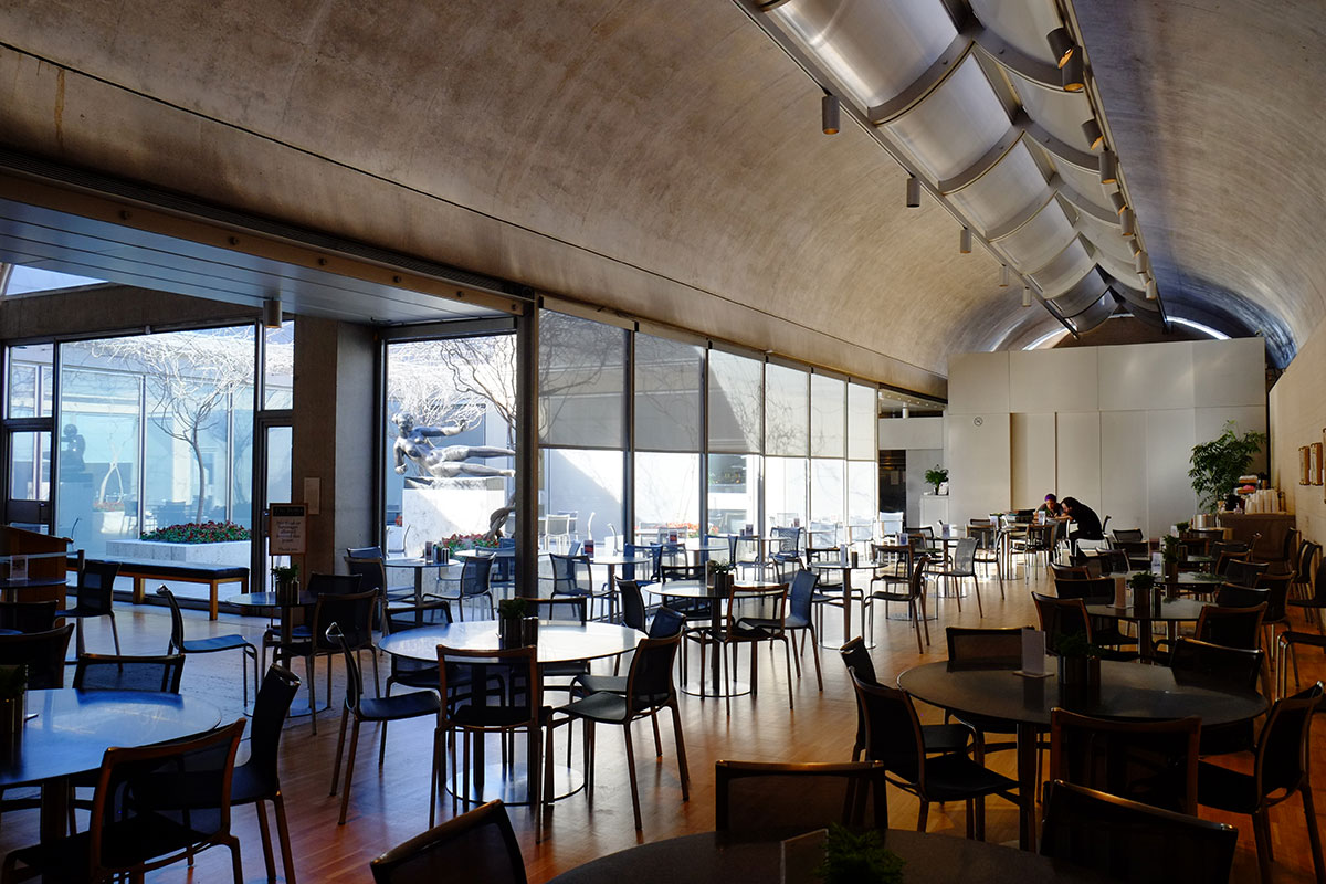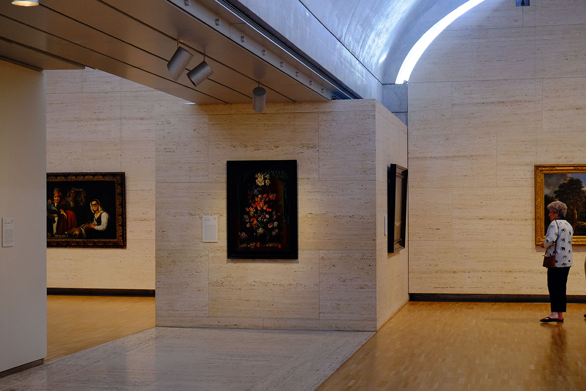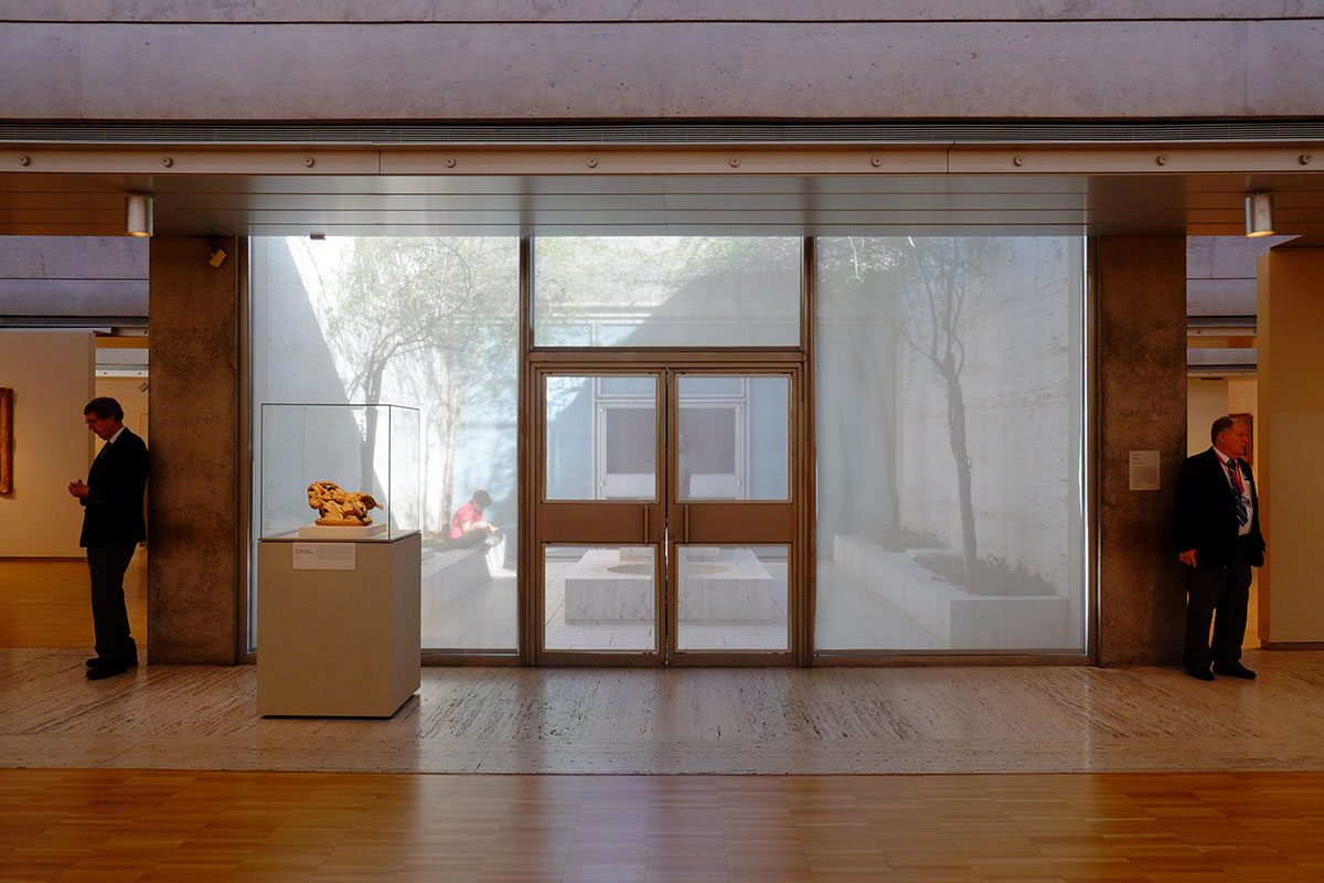 The Piano light scoops and shades are in full play, fitting in a building which plays off the iconic American daylighting masterpiece across the way. The main galleries are to the north and south, and are beautifully lit and proportioned.