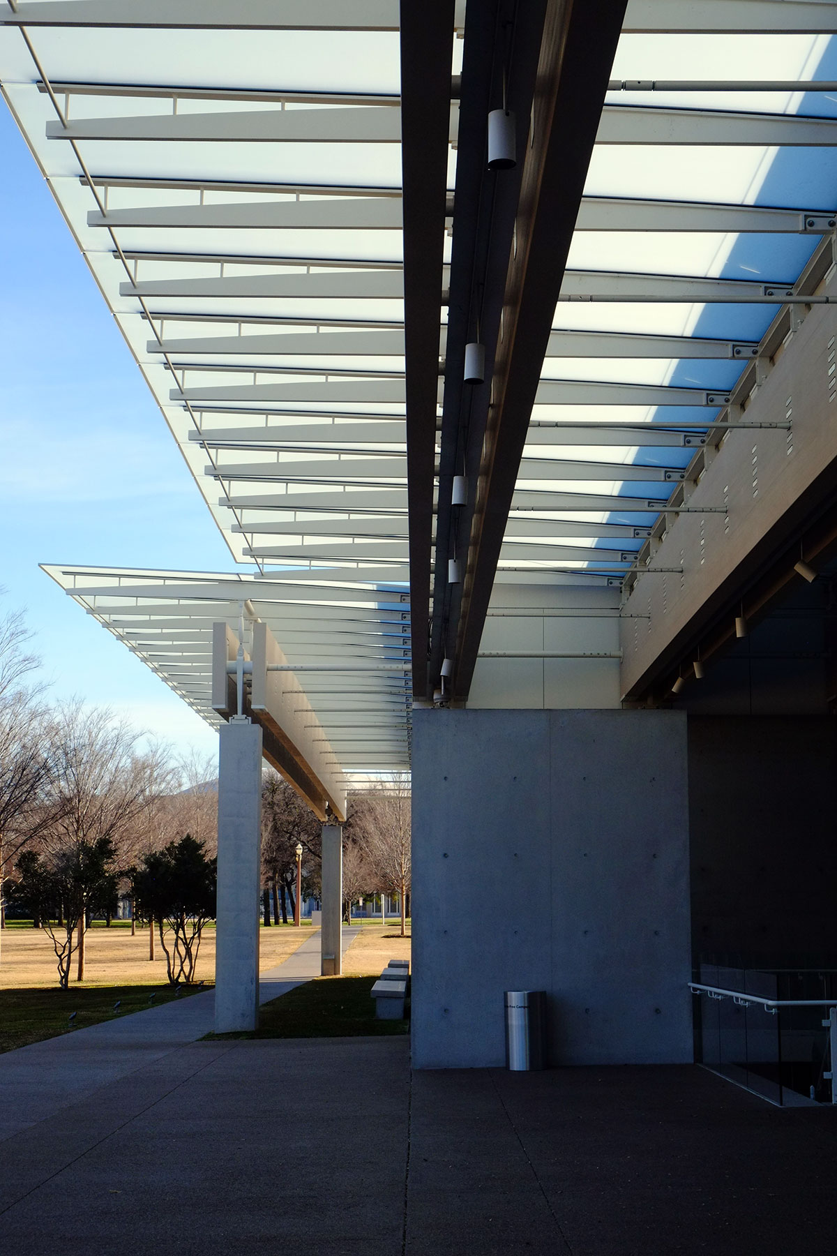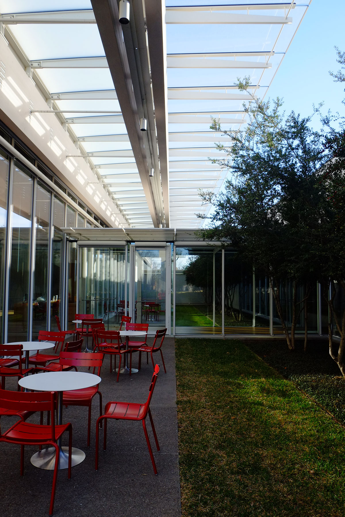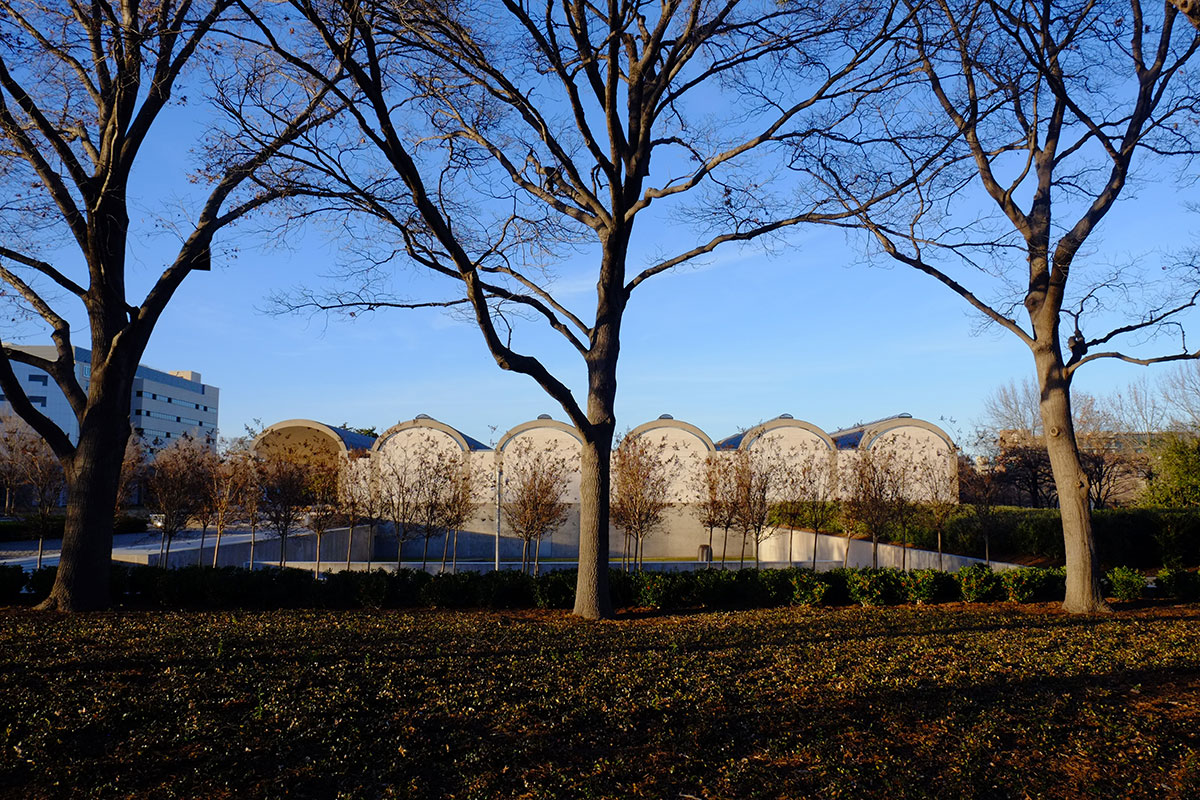 One of the goals of this trip was seeing the Kahn buildings in out-of-the-way places that I had not seen before. An unintended theme that developed has been seeing most of the Piano museums across the country. The Kimbell is where these two came together, in what must be the ultimate compare-and-contrast question for a modern architectural history exam. After seeing the two together, I’m more convinced than ever that having Piano design the addition to Kahn’s Kimbell was the best possible choice. There is no other living architect whose work could pay homage to Kahn without imitating him, and who could simultaneously complement Kahn’s work while taking an archetypally different tectonic approach.
