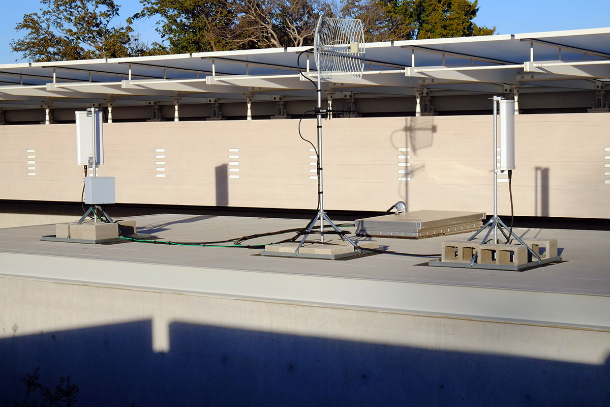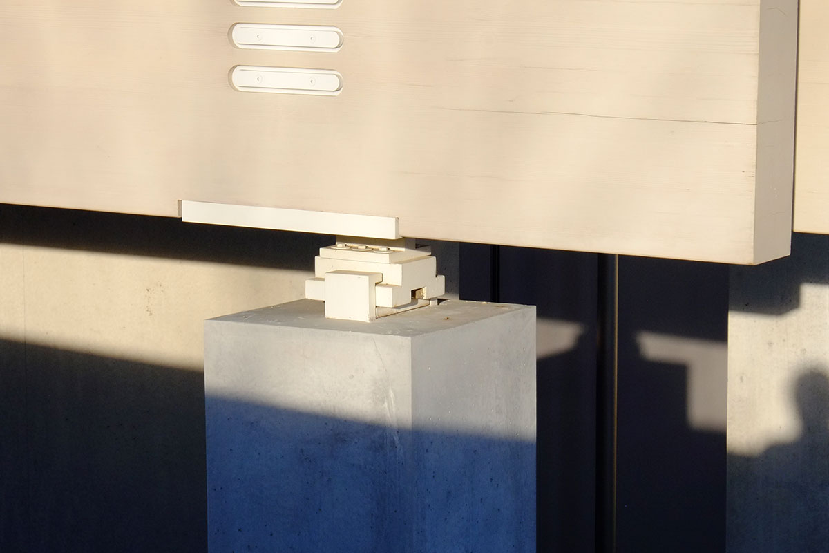 There are also some antennae on the roof, which they clearly did not want to anchor through the roof membrane, so they attached them to metal pans which are then weighted down. Notice that the one on the left is weighted with standard concrete blocks with the cells facing upward, the one on the right uses concrete blocks with the cells facing sideways, and the one in the middle has thinner, solid blocks (probably concrete pavers). The amount of care that Piano’s office takes with such detailing decisions is truly staggering – every different condition is thought through carefully and resolved.