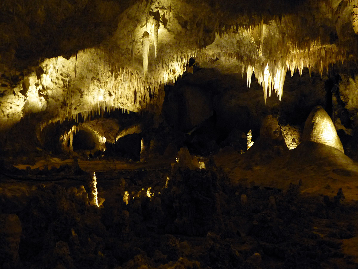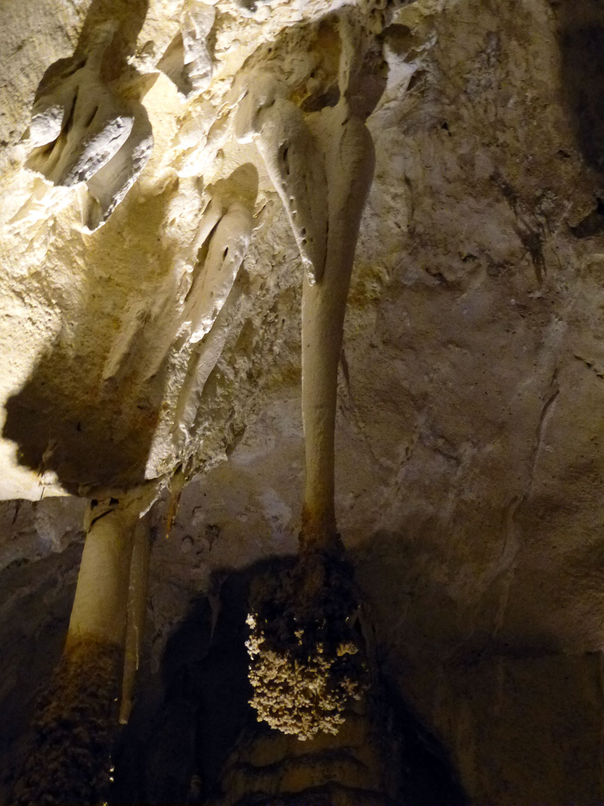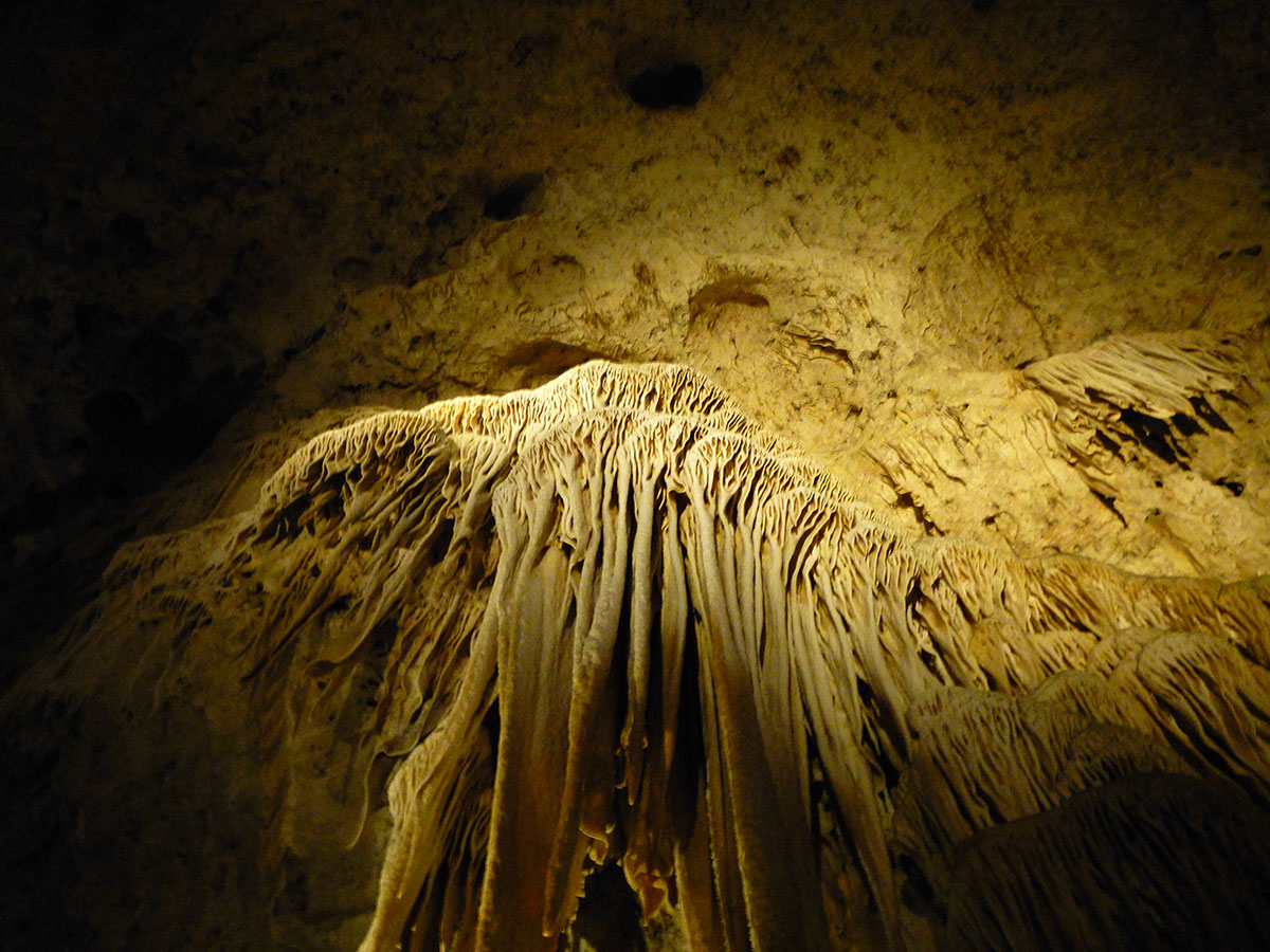 But that might not be saying a lot, because the cavern was HUGE. Fourteen acres of floor space, it’s the largest natural room in the Western hemisphere, several times bigger than Luray. And several times more impressive. P1080076The Chandelier was the most gorgeous, and the most aptly named. The nps had even strung lights up inside of it, making it glow a soft creamy gold. And some of the flows did their best to convince you they had been carved by elves.P1080115 P1080118