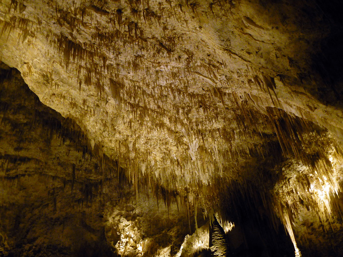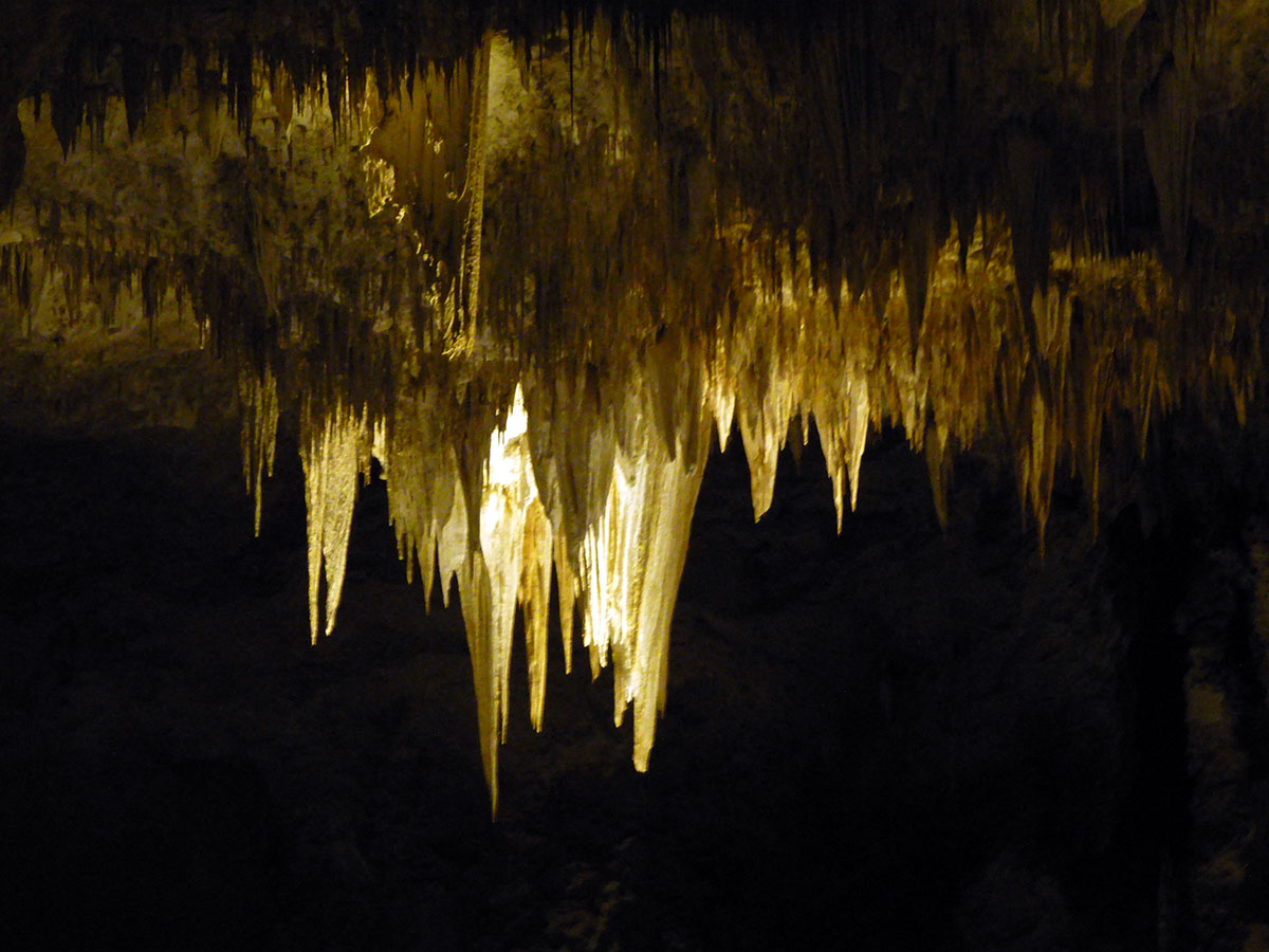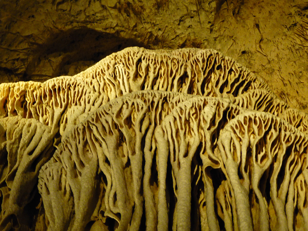 But that might not be saying a lot, because the cavern was HUGE. Fourteen acres of floor space, it’s the largest natural room in the Western hemisphere, several times bigger than Luray. And several times more impressive. P1080076The Chandelier was the most gorgeous, and the most aptly named. The nps had even strung lights up inside of it, making it glow a soft creamy gold. And some of the flows did their best to convince you they had been carved by elves.P1080115 P1080118