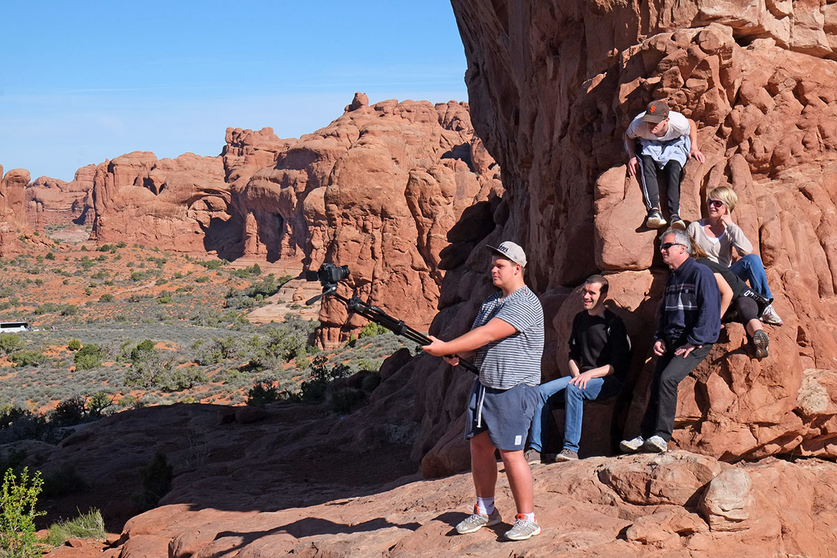 Arches National Park:  the French have not yet discovered the Selfie-stick, so they have to use a tripod.  DSCF7827