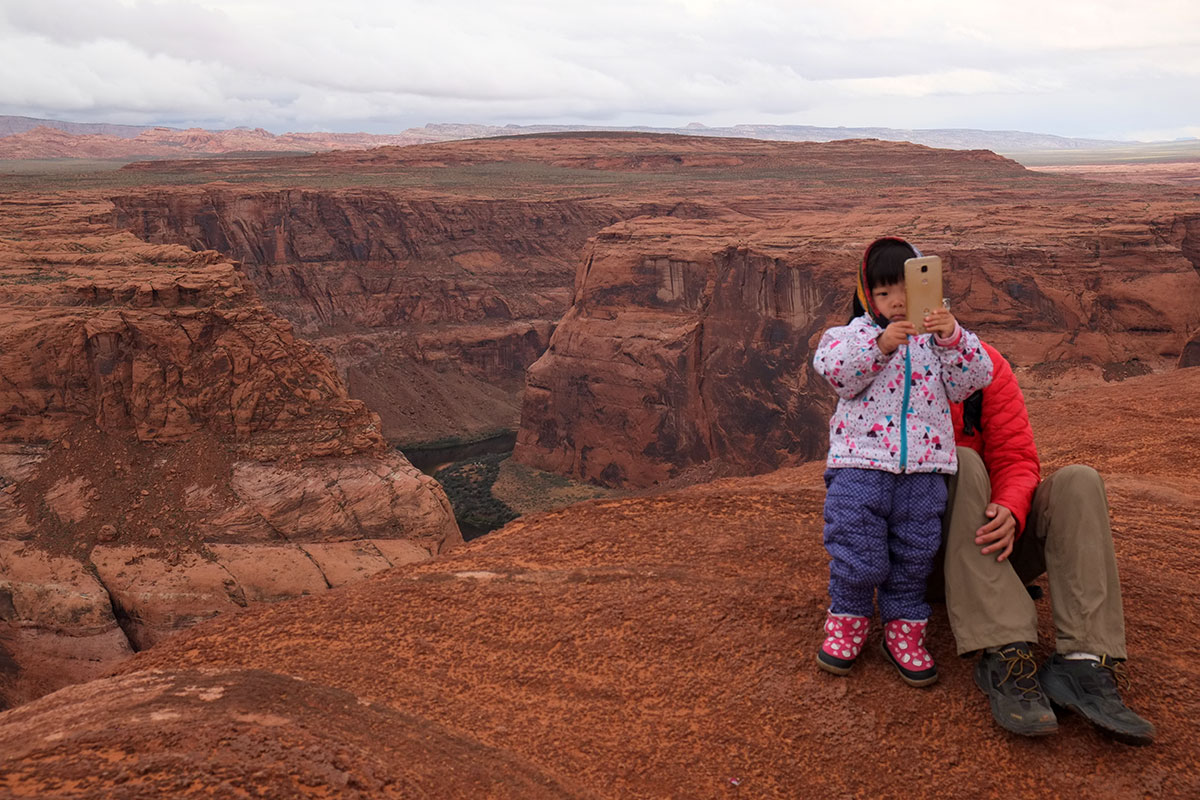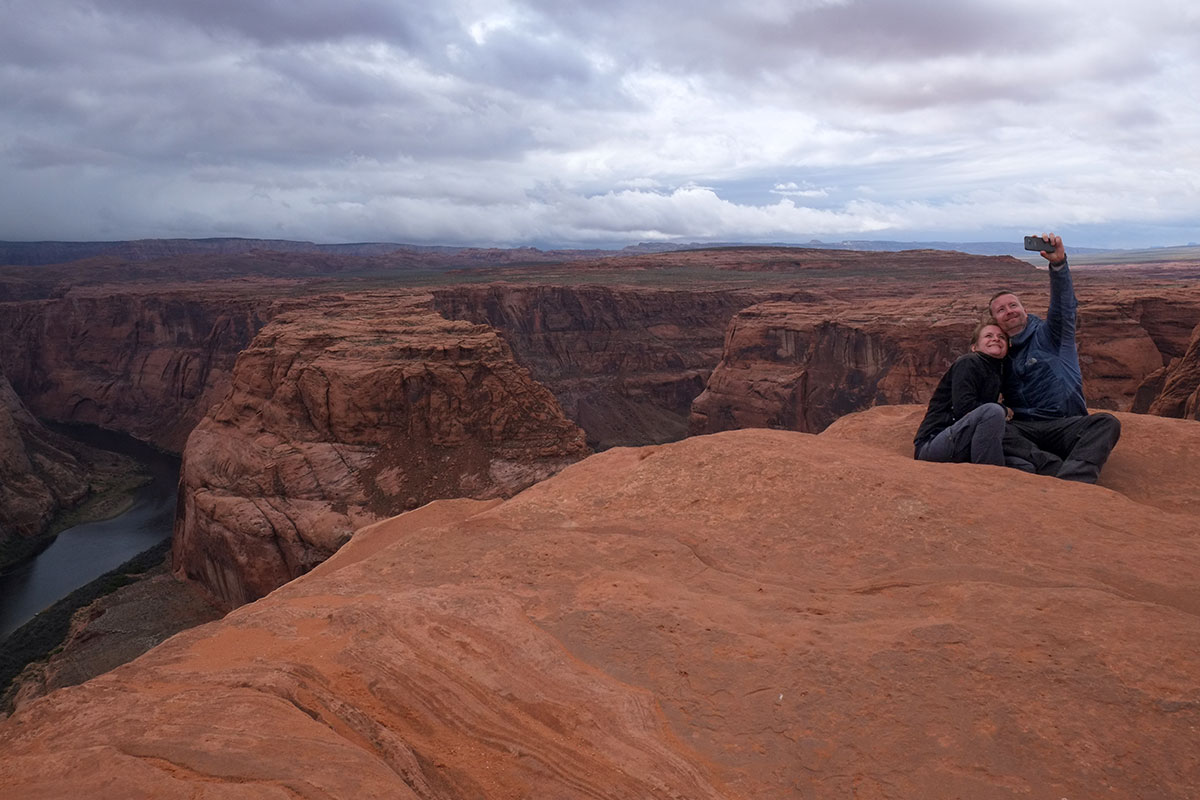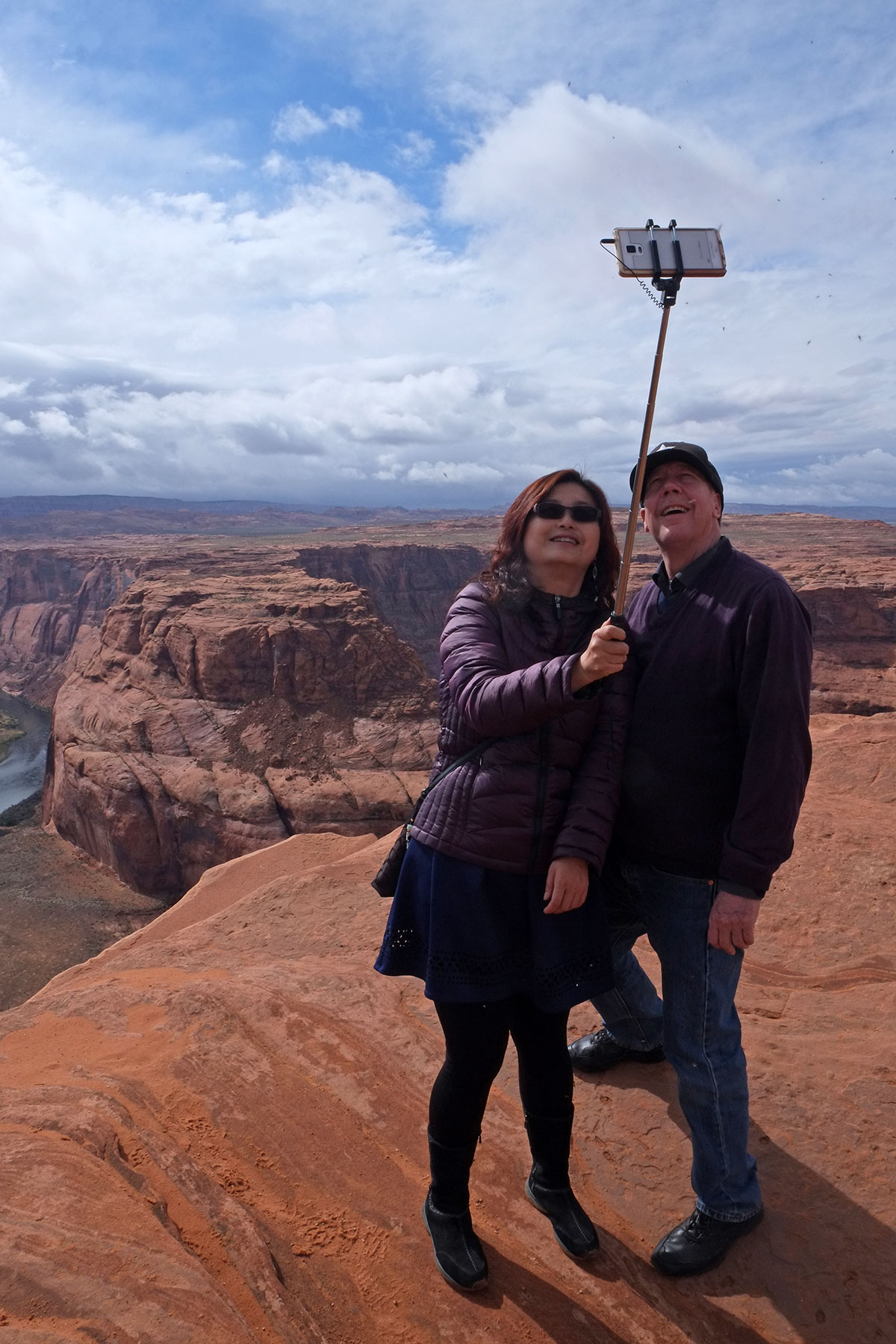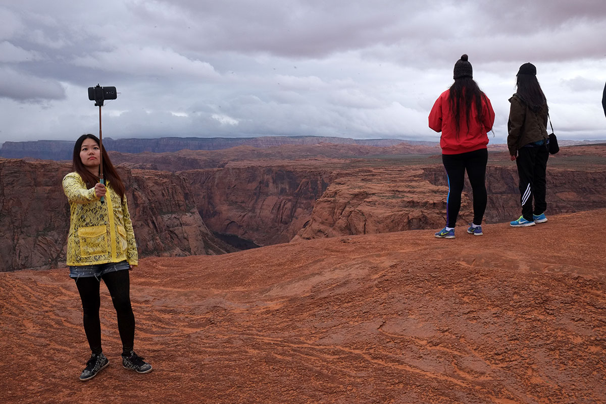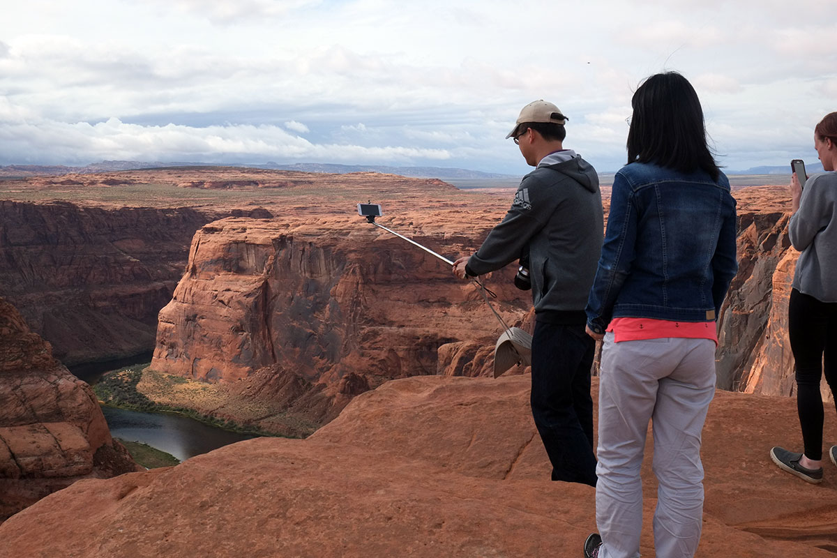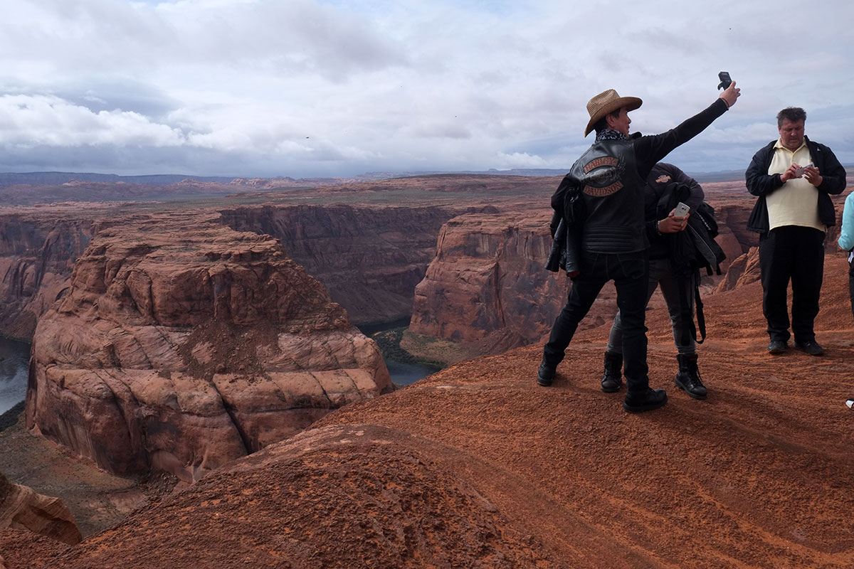 Horseshoe Bend in the Colorado River.  Selfies on the edge of the abyss – no guardrails, crumbly sandstone.  We see how much people really want the ultimate selfie.