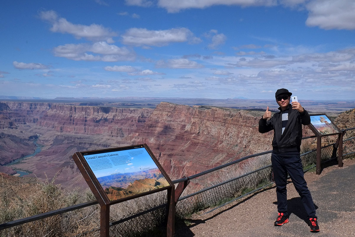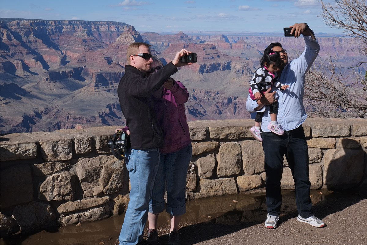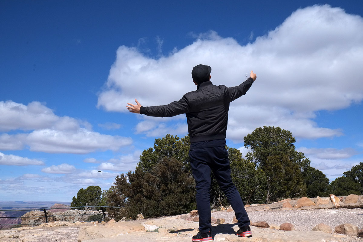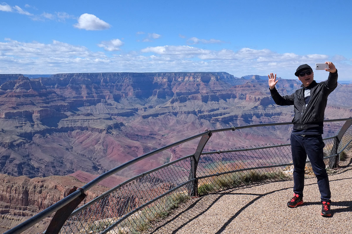 Selfie-Boy, as we call him, transcends the category of selfie-taking in a place.  The photo of the selfie suddenly was no longer about the selfie-in-place, it was all about him.  The Grand Canyon is lost in the distance, it fades out of the picture.  There is only the virtuosity of Selfie-Boy. DSCF8412