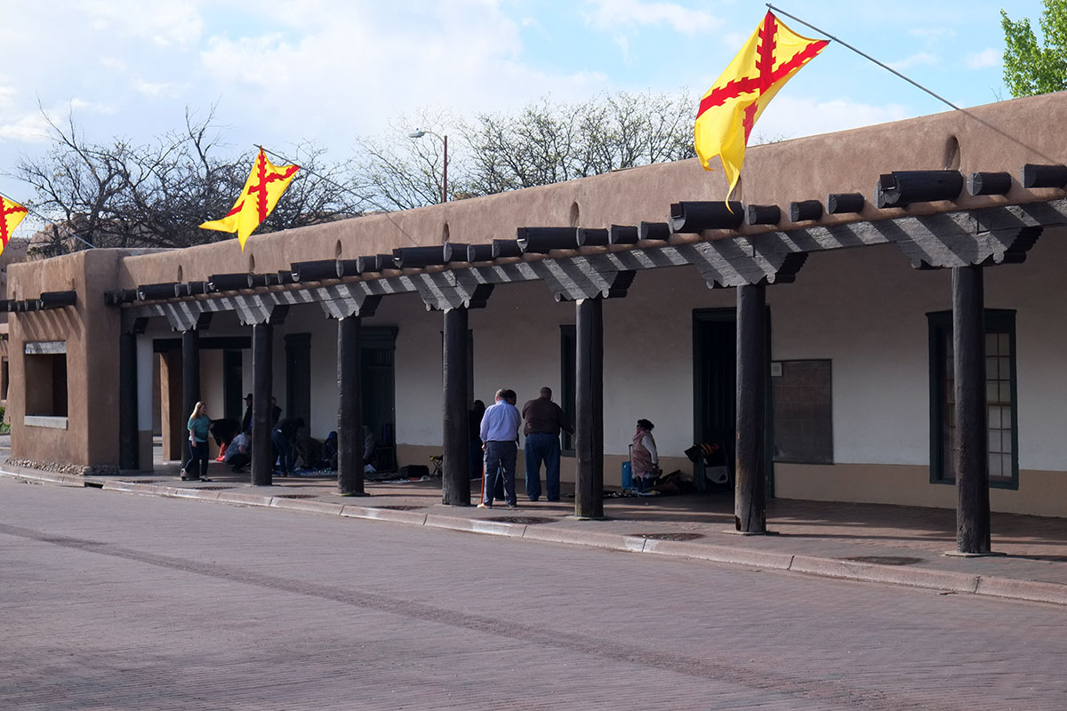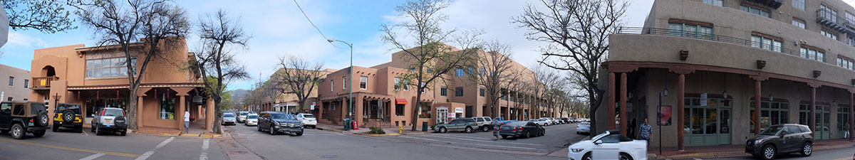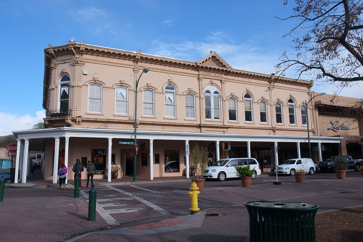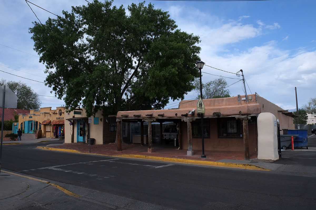 There were no jarringly bad modernist buildings – but there were no good modernist buildings either. Everything was low in height, covered in stucco within a narrow color range, and detailed in a Puebloan manner. We subsequently learned that this style is sometimes called Faux-dobe, and this conformity was written into local law when New Mexico became a state, in 1912. (Interestingly, this was one year before the first zoning ordinance in the country was adopted in New York.) At that point Santa Fe only had about 5000 residents, so this regulation has been in place for virtually all of its growth. In the 1930s the “Territorial” style was also included, incorporating those white-painted elements we’d seen on the Burger King.DSCF9787