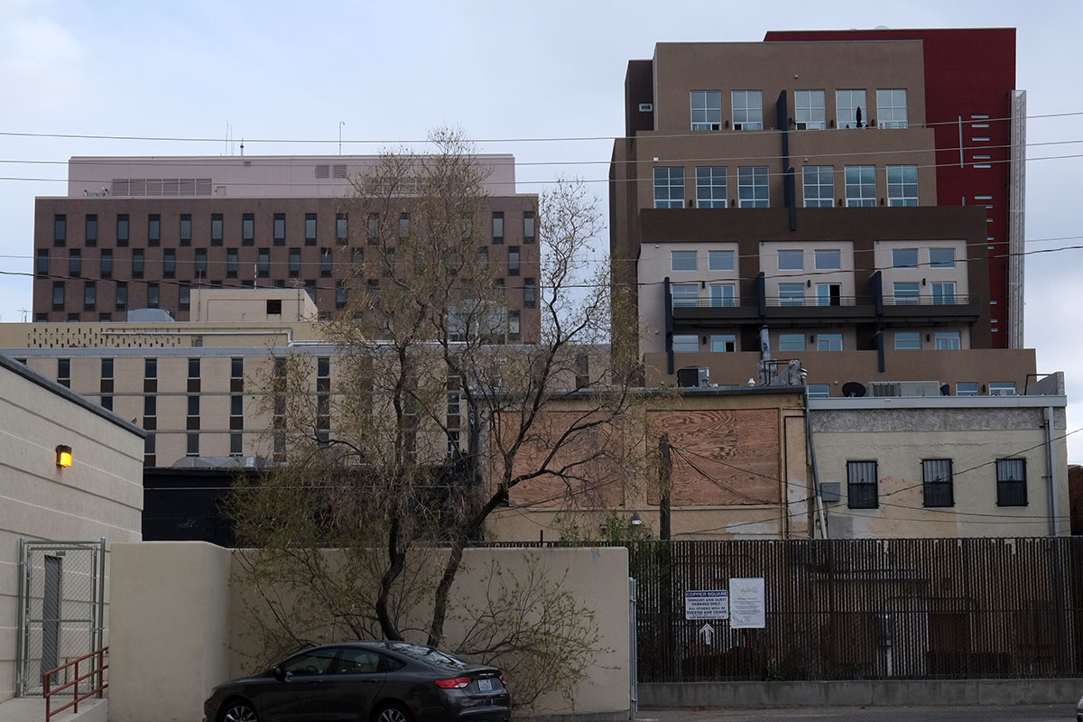 We arrived on the UNM campus and I first met with John Quale, the architecture department head, who has been working on passive house modular housing projects for years (and who coincidentally was on the jury that gave us the housing curriculum award). Then Greta and I took off with Mark, who showed us around their school (the fine Predock building blogged earlier), east side neighborhoods, and the downtown.  On our trip we had gotten used to simply exploring cities on our own, doing a little research and then wandering off in whatever direction appealed to us, so it was very different and informative to have a guide who knew the background on everything we were seeing.  (We had heard about the Frontier Restaurant from others, but it was Mark who impressed upon us its centrality to the Albuquerque ethos, and who dragged us in there the first time.)  Mark was a keenly wry observer of the city – talking about the trends of the past decades, what had gone wrong and what had gone right.  He didn’t try to hide Albuquerque’s flaws, but he didn’t understand how good it all looked to us anyway, as Phoenix and Vegas were the only other Southwestern cities we’d seen in the past 7 weeks.