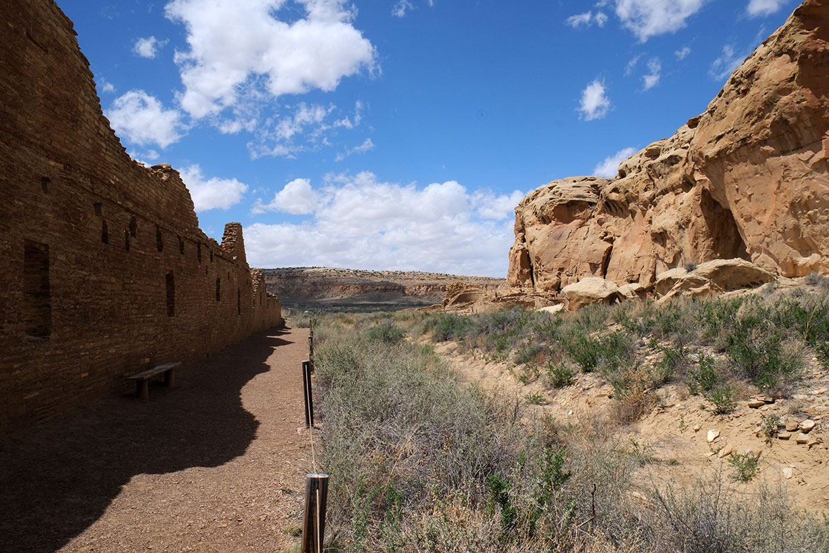How did my fascination with the plan play out?  We learned that we could hike up the canyon wall to see Pueblo Alto, a great house located on the canyon rim.  From that trail, we would be able to look down upon Pueblo Bonito.  We started up what is actually one of the ancient pathways into the canyon, with narrow passages and stairs, some of them hewn out of the rock by the residents.  There was a view of Kin Kletso:96. Chaco00796. Chaco191DSCF9160