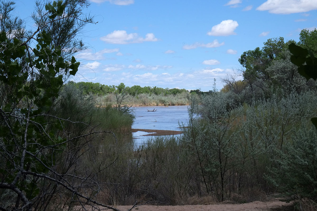 The Rio Grande River flows through Albuquerque, west of the downtown.  With its flood plain it is a pretty wide boundary, requiring major bridges / causeways to cross.  But it is a fantastic resource, with miles of trails and open space along it.  For a medium-size city, Albuquerque has a huge amount of open space close by.  DSCF9345