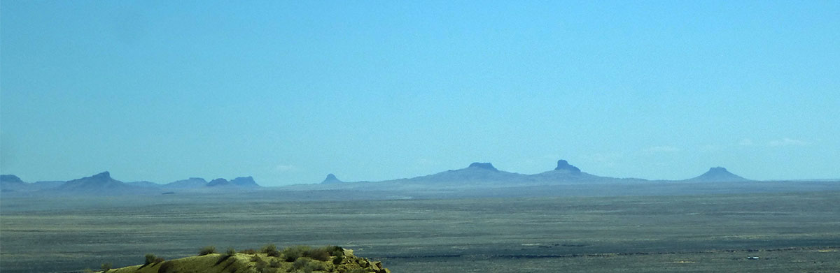 A fourth characteristic that gives Albuquerque much of its character is its natural context.  The Sandia Mountains rise just to the east of the city.  They provide a stunning backdrop, visible from almost everywhere, and they also limit sprawl in that direction.  Here you can even see them from way out on the mesa west of the city.  DSCF9680