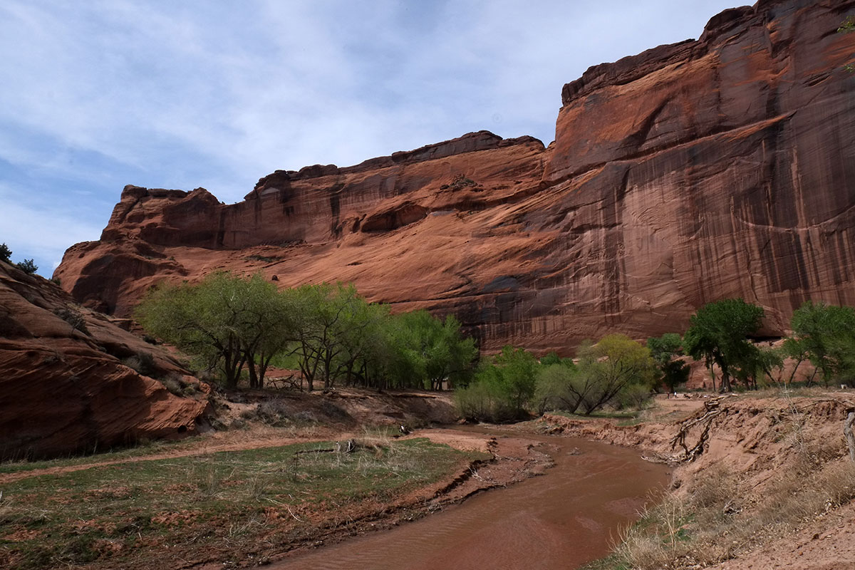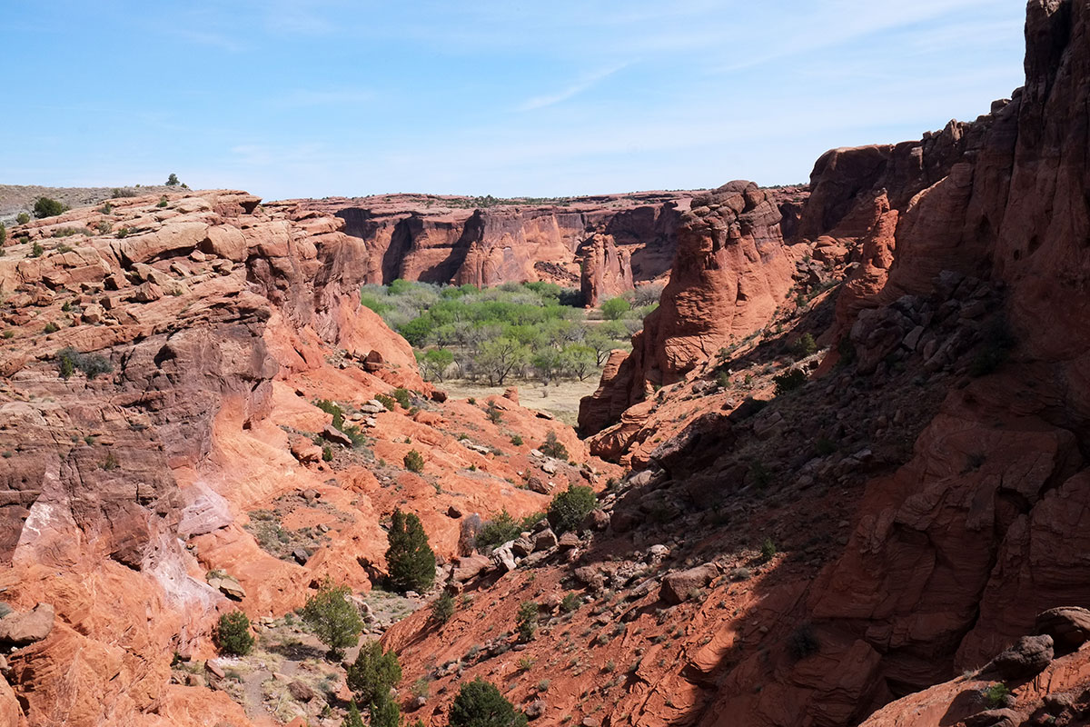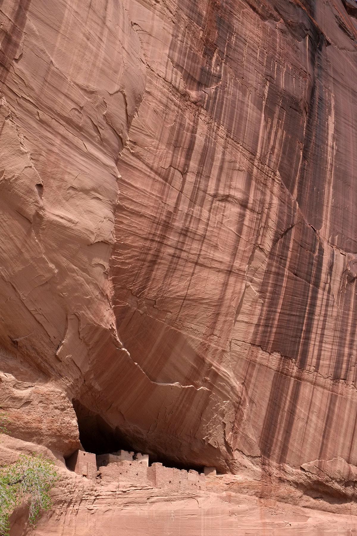 95. Tsegi177DSCF8709The garden in the desert – the defined place that is lush and life-sustaining in the middle of infinite, awesome emptiness. We came across these intermittently in our travels in the Southwest, and in each one we felt a sense of shelter, relief, of coming back to a world that nourished humans. Santa Elena Canyon, Montezuma’s Castle, Zion Canyon – they each had their extraordinary scenic appeal, but the experience of them is more than just visual, and is heightened by the contrast with the world outside their confines. Tsegi (Canyon de Chelly) may be the most enticing of them all. It has the grand vistas of the others, but it also feels the most inviting – a green world at the bottom of a 20-mile long canyon, not just a small interruption in the desert.