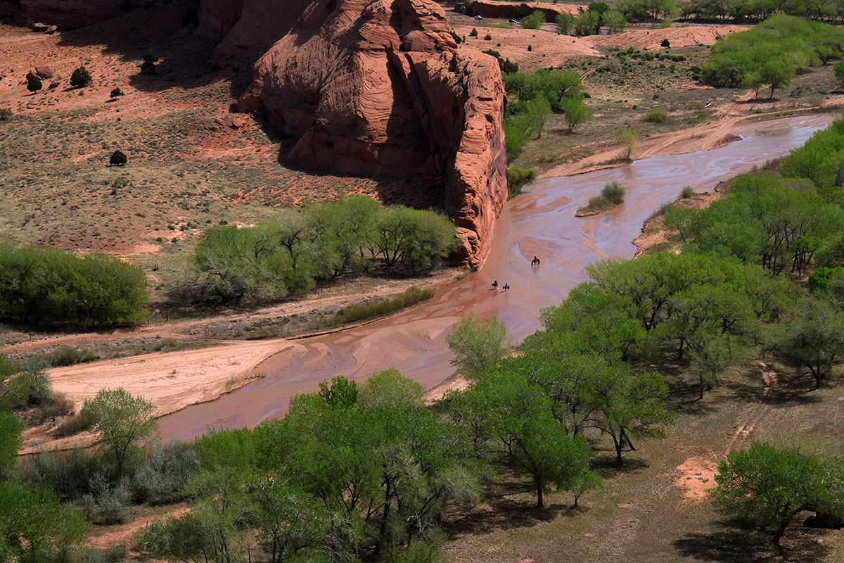 On the south rim drive, looking into Canyon de Chelly, we caught a glimpse of riders on the road / streambed.95. Tsegi178DSCF8714