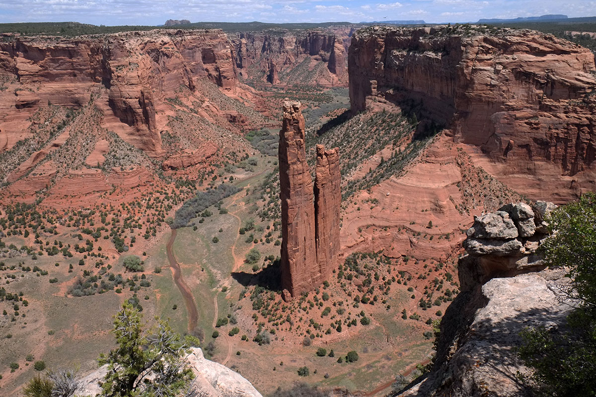 The end of the drive is at Spider Rock, an 800-foot butte which is the home of a legendary spider, used in tales to frighten Navajo children. The Chuska Mountains are visible in the distance.95. Tsegi179DSCF8744