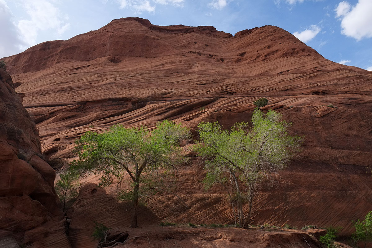 This contrast between the hard, barren cliffs and the life in the canyon plays out with the vegetation too. We were there in April as the bright-green leaves of the cottonwoods popped out. Living in the Northwest, cottonwoods are just one of the many trees we know, and we notice them mainly when they cover the bikepath along the Willamette with their seed pods; after a spring in the Southwest, I will never take them for granted again.95. Tsegi188DSCF8853