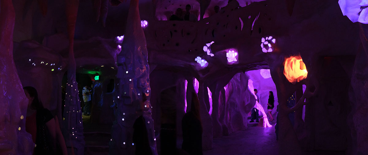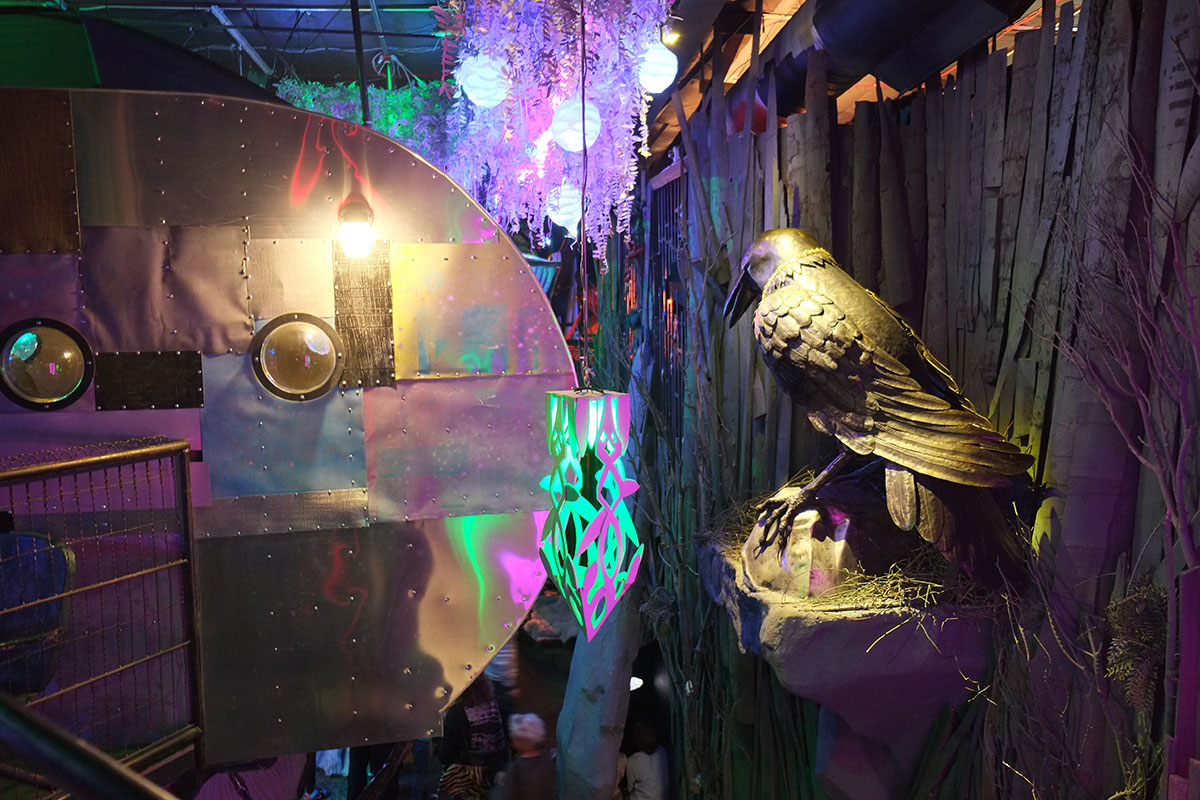 DSCF9899The House of Eternal Return is what happens when you give over 100 artists funded by George RR Martin a 20,000 square foot bowling alley in Santa Fe. It was lucky that a friend of mine had told me about it, because having only been open a month when we went, it hasn’t worked its way up through the ratings on Tripadvisor. This is not the kind of conceptual art people complain about not understanding as they stare at it on the wall. You can literally climb inside, over, under, and through this art. I think the best way to describe it is to call it a marvel of non-linear storytelling combined with a jungle gym and a carnival funhouse.DSCF9916When you first walk inside, it looks like a normal house. A Victorian from Mendicino, the Elsbergs, a normal family with two girls and a boy, own it, and it looks like they just left. Newspapers strewn across the kitchen table and everything. Then you start to find the portals. The fireplace, the kids’ closets, the door under the stairs, the refrigerator. DSCF9887I couldn’t stop thinking Pixar and Disney movies as I walked through. The mammoth skeleton behind the fireplace seemed straight out of Ice Age, and the door under the stairs led to a tropical rainforest that made you feel like Mowgli in Jungle Book. The strongest connection, at least to me, was how the yeti and the little trailer came together to make it feel like you’d just been banished through a door in Monster’s Inc. DSCF9895DSCF9910Part of me wonders if they have to send someone through when it closes to make sure no one’s hiding in there to spend the night. Then again, I’m not sure how effective one person could be, as there are literally a thousand places to hide. After two hours, I still kept stumbling into whole new sections. And I don’t see why anyone would want to spend the night alone there. Things that seem mystical in the daytime with lots of people nearby would easily turn to nightmare-inducing terrors at night, and it would seem quite possible that the shadow on the wall is being cast by a monster, not a coat rack.