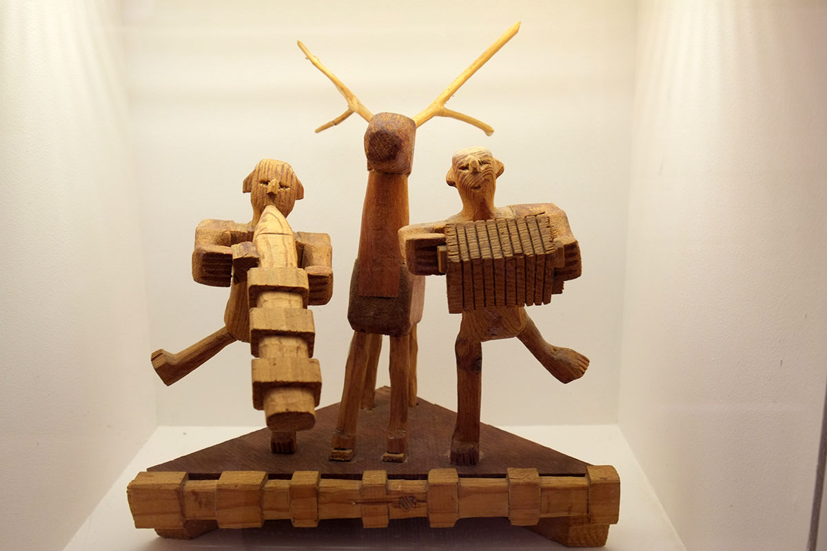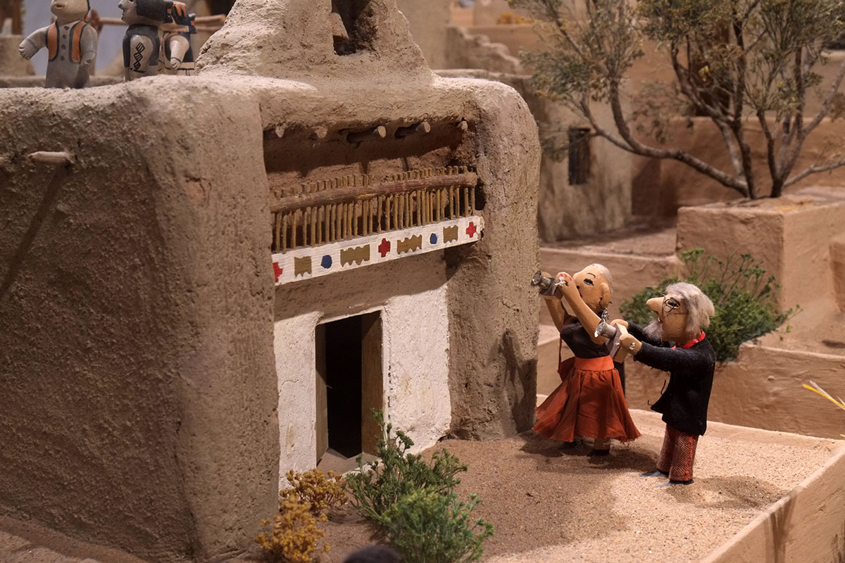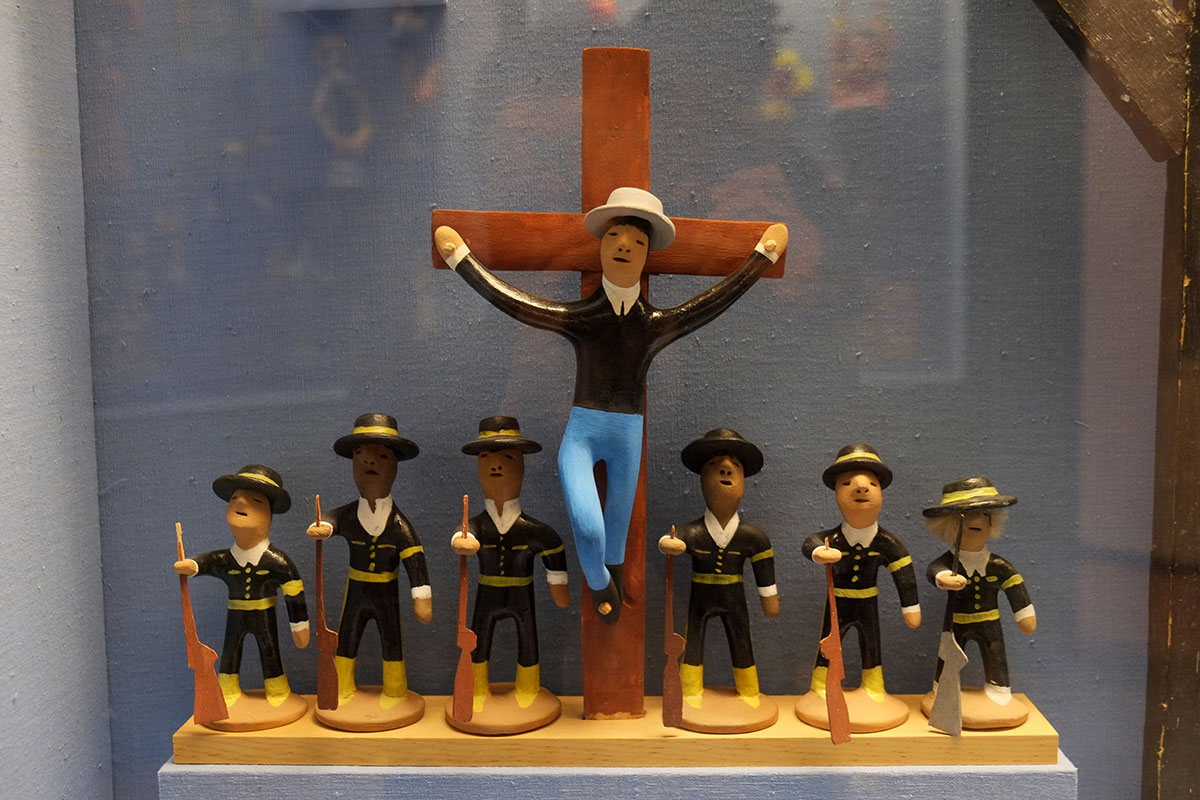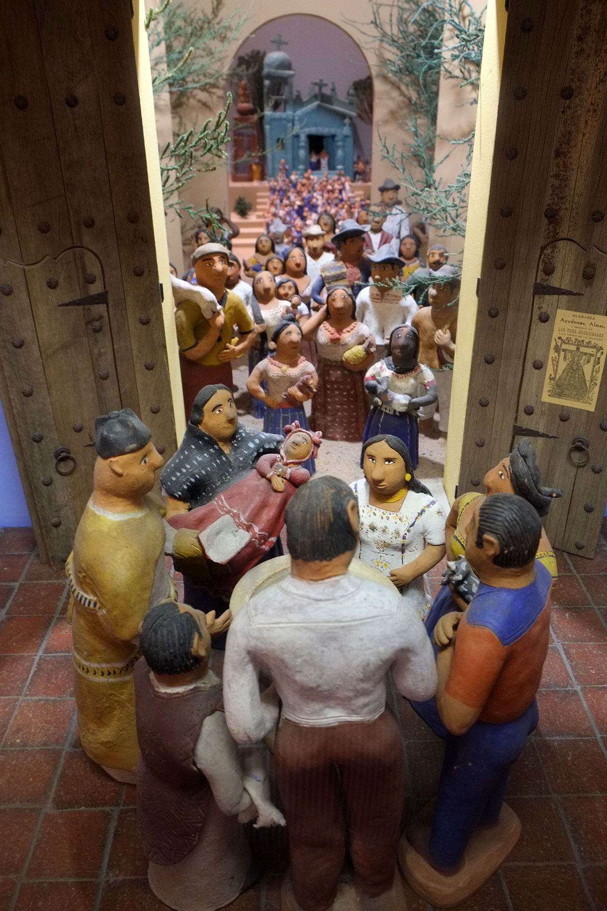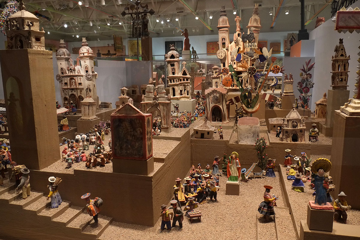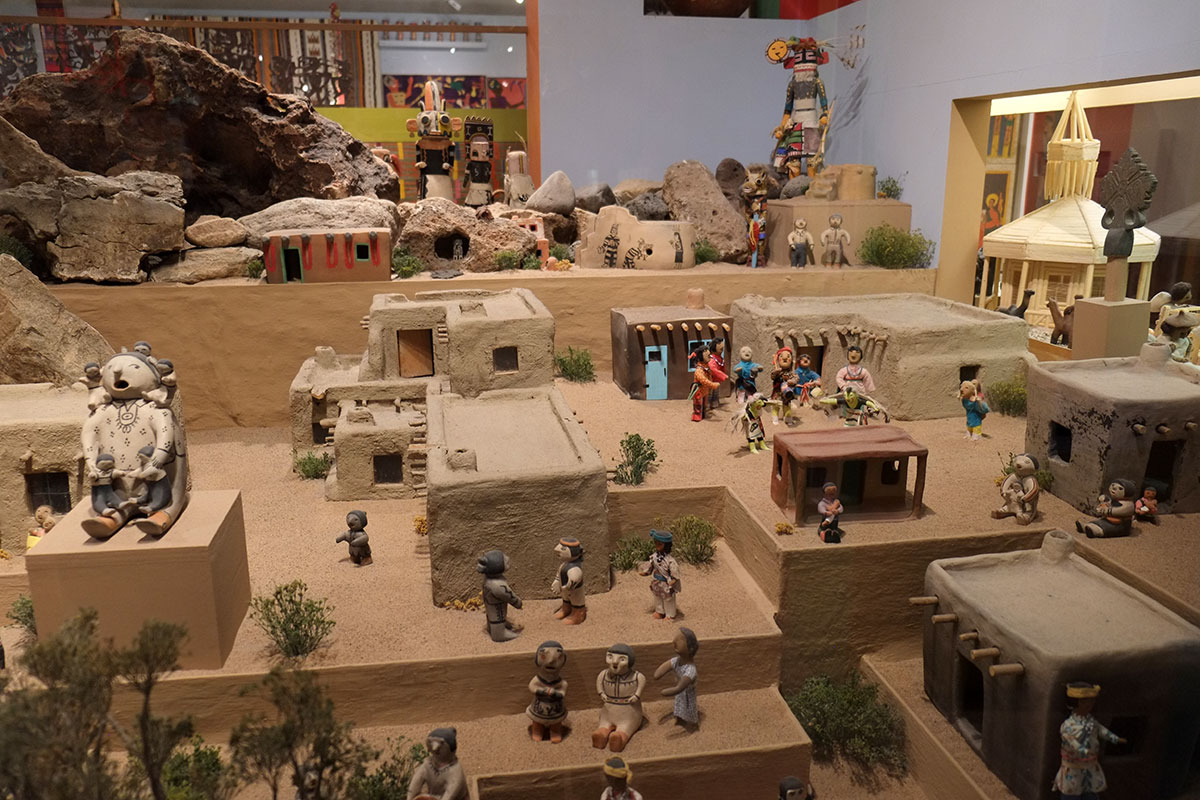 His sense of humor is evident, as where he constructs a pueblo with figures from different cultures,DSCF9729