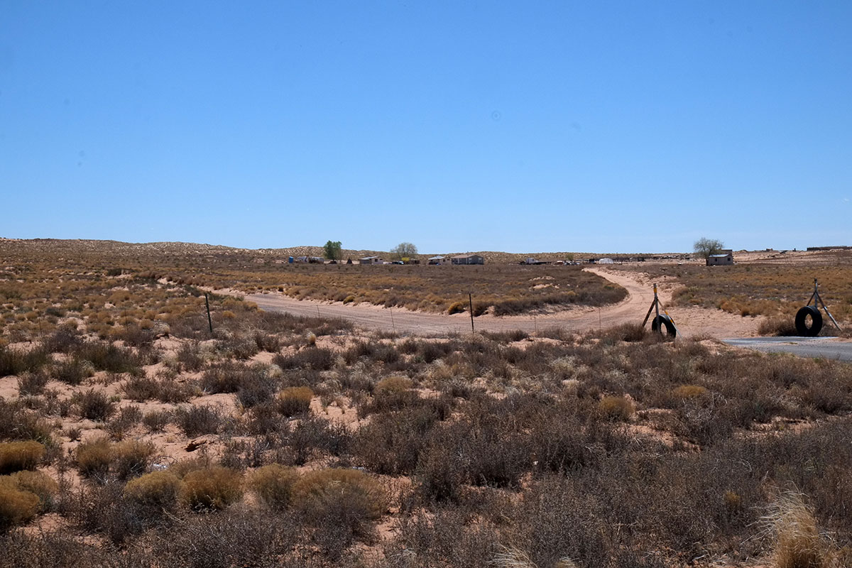 You can see the difference in preferred settlement patterns between the Puebloans and the Navajo quite clearly, even in this confined canyon. The Hopi and other Puebloans (descendants of cliff-dwellers) live in dense villages, clustering together in one spot in the desert. The Navajo prefer open country, and don’t seem to appreciate towns – their cities all seem to be recent service centers, places where the 150,000 members of their nation can get supplies and intersect with the modern world of bureaucracy. They take the normal nature/built-world Manichaeism typical of the Southwest to the nth degree – Navajo empty-nesters and millennials are not flocking to walkable neighborhoods. Everywhere we went in this vast reservation, this was the typical dwelling – a cluster of small buildings, surrounded by range land, where they raise their herds of sheep:DSCF8626