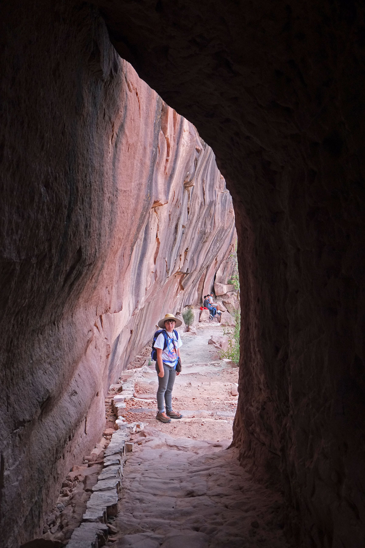 We stopped at other points, with equally cool vistas of canyons or other cliff dwellings. But as always with us, the best way to see and understand the place was to do what hiking we could. So we headed for the one trail down, which leads to the White House cliff dwelling. The path winds its way down the cliff, with switchbacks and a couple of tunnels.DSCF8755WhiteHouseTrail002