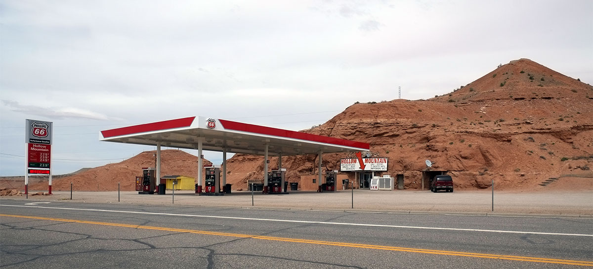 It is the clearest, most iconic illustration I’ve ever seen of the difference between an architecture of mass, and one of frame.  The giant gas station canopy is of steel, while the convenience store is actually located in a cave under that hill.  It is of such primal, elemental clarity that I literally couldn’t believe it at first.  It looks like it could be a thesis project at half the architecture schools in this country (except that it has right angles).