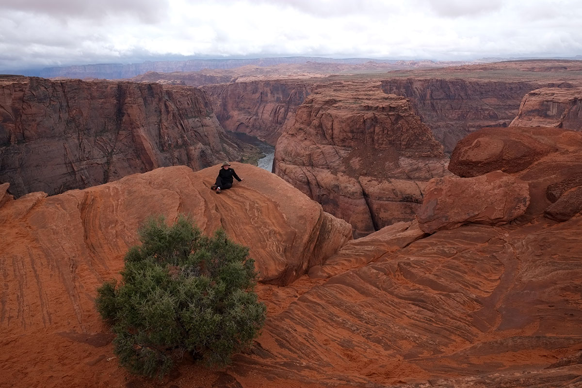 Outside of Page is the Horseshoe Bend on the Colorado, a spectacular attraction for tourists, and one where, since it is on Navajo parkland and not National Park land, the safety precautions are nonexistent.