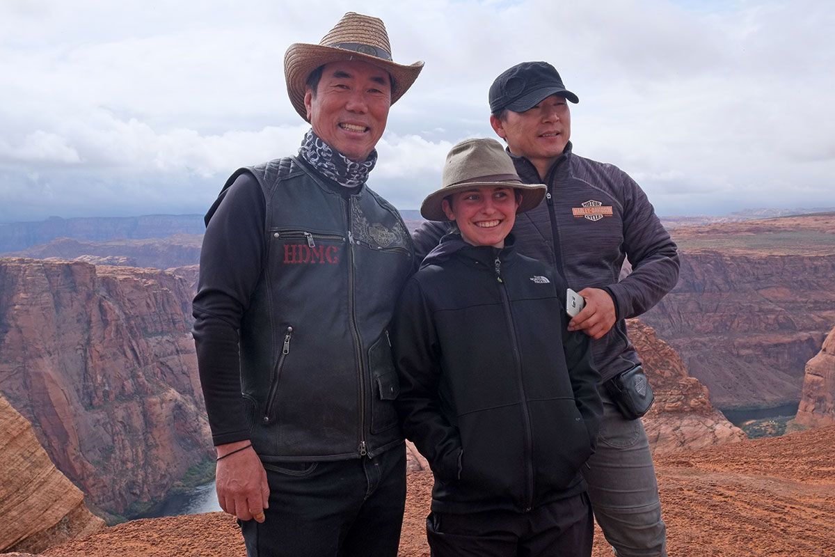 We could never figure out why, but these Japanese cowboy bikers were very insistent that Greta pose with them. We think maybe they liked her hat.