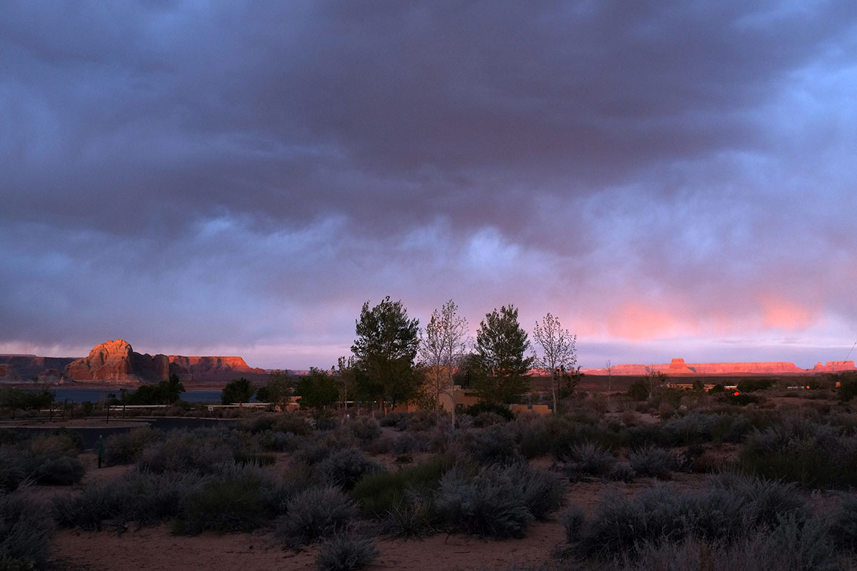 The landscape here shows the same intense contrasts as at Lake Mead – a huge expanse of water surrounded by cliffs – and it provides the same recreational activities. Both times we stayed here the light was spectacular – the landforms of the Southwest are magnificent, but they are equalled by the skyscape.